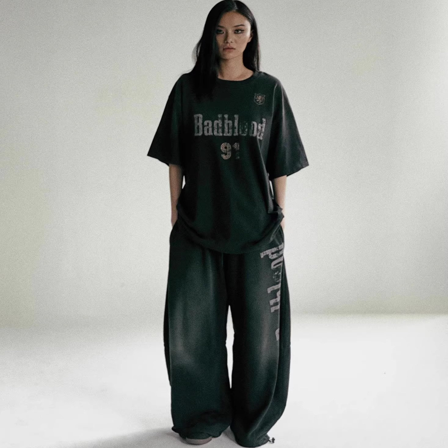 📚 badblood明星慵懒美式复古阔腿裤宽松休闲辣妹跳舞做旧扎染卫裤女