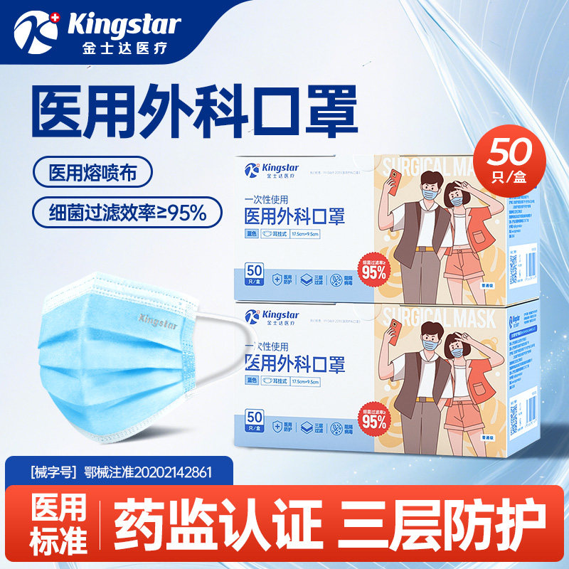 📚 金士达医疗口罩成人一次性使用医用外科口罩儿童医用口罩正品正规