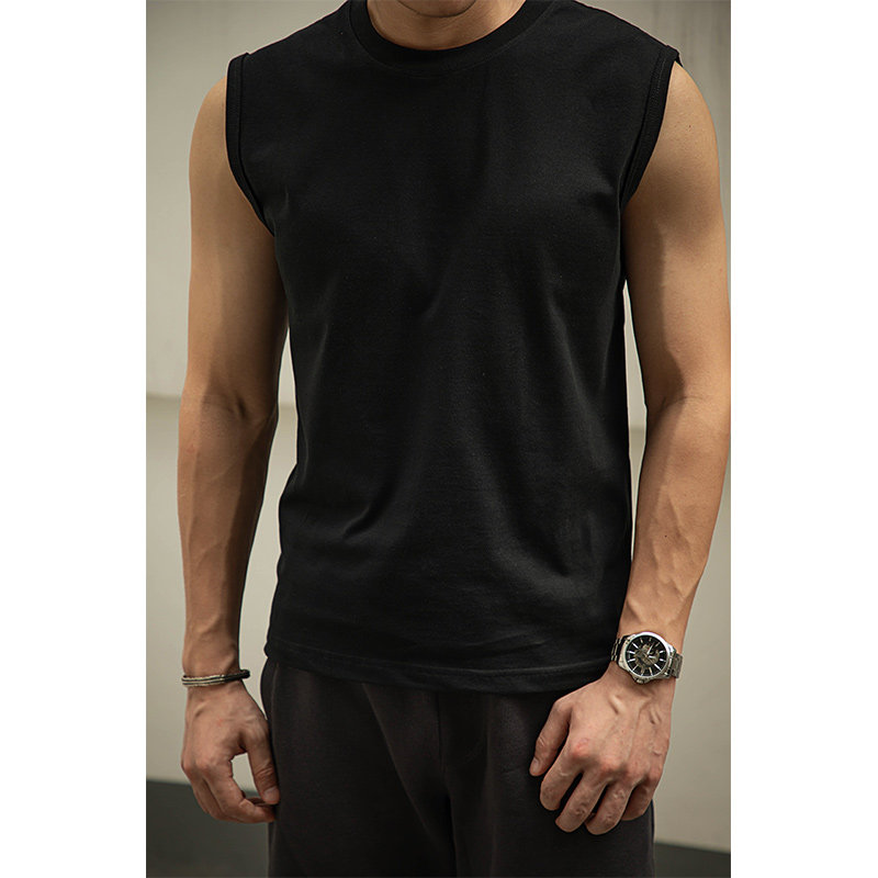 📚 唔刃工装美式小领口重磅无袖T恤背心坎肩吸汗透气内搭硬汉运动男