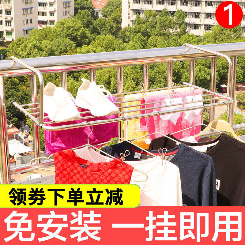 📚 窗外晾衣架阳台晾晒神器窗户高层室外伸缩晒鞋架防盗窗台置物