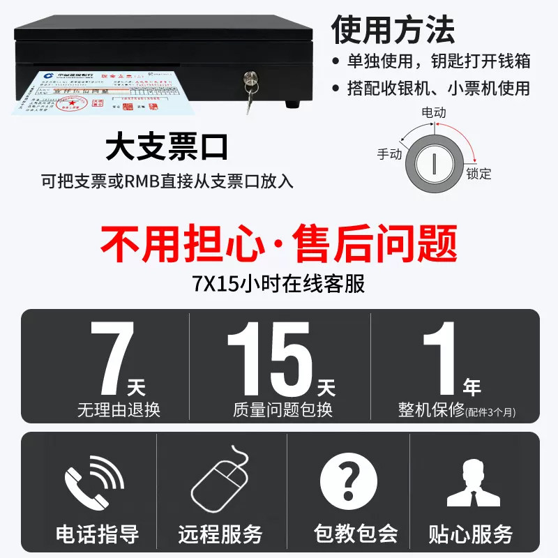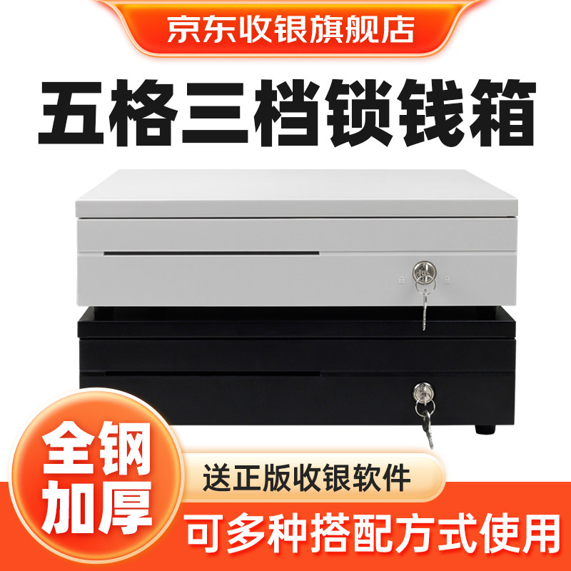 📚 京东收银机适配钱箱商超便利店收银箱商用水果生鲜超市便利店多功能五格存钱箱带锁钱柜现金装放钱纸币通用