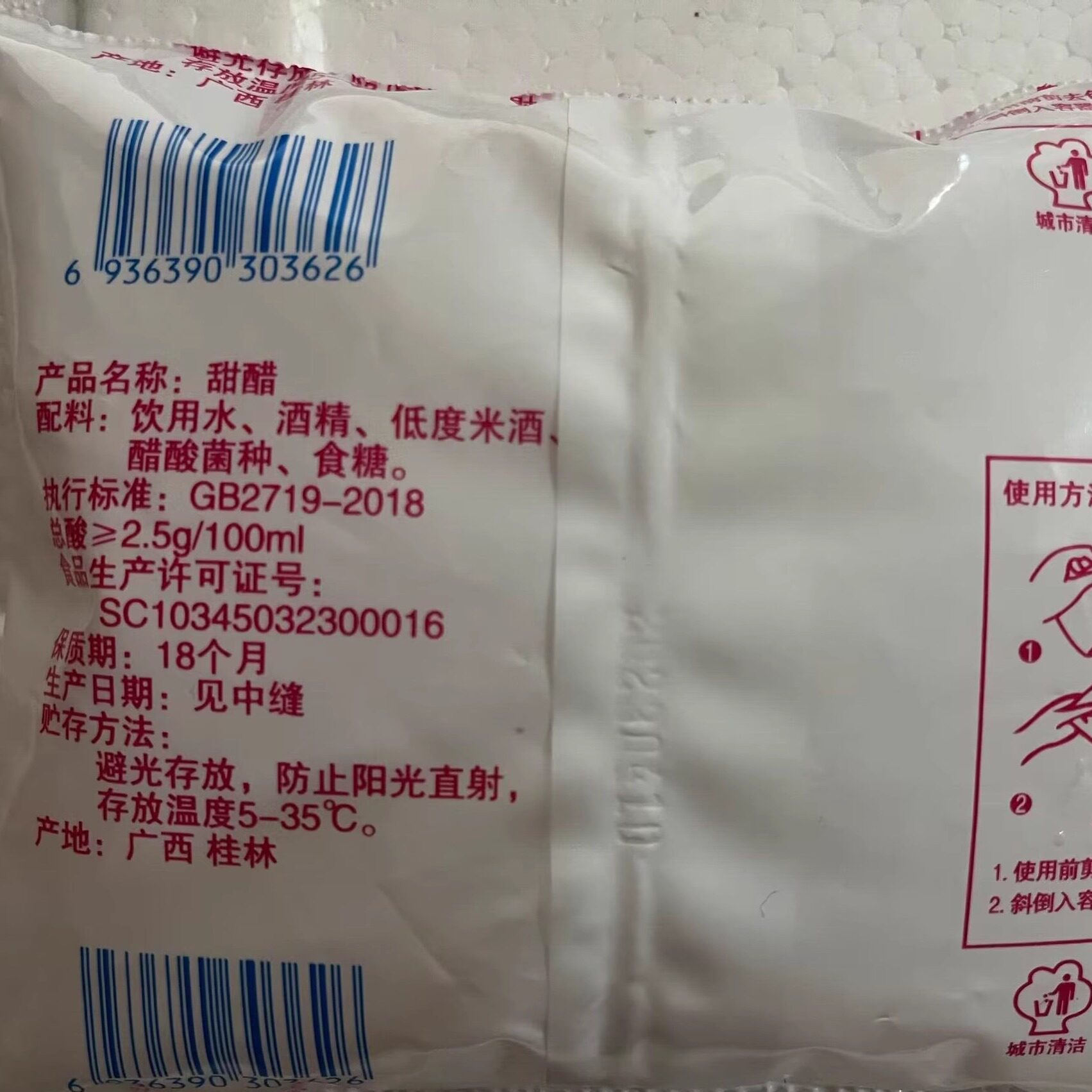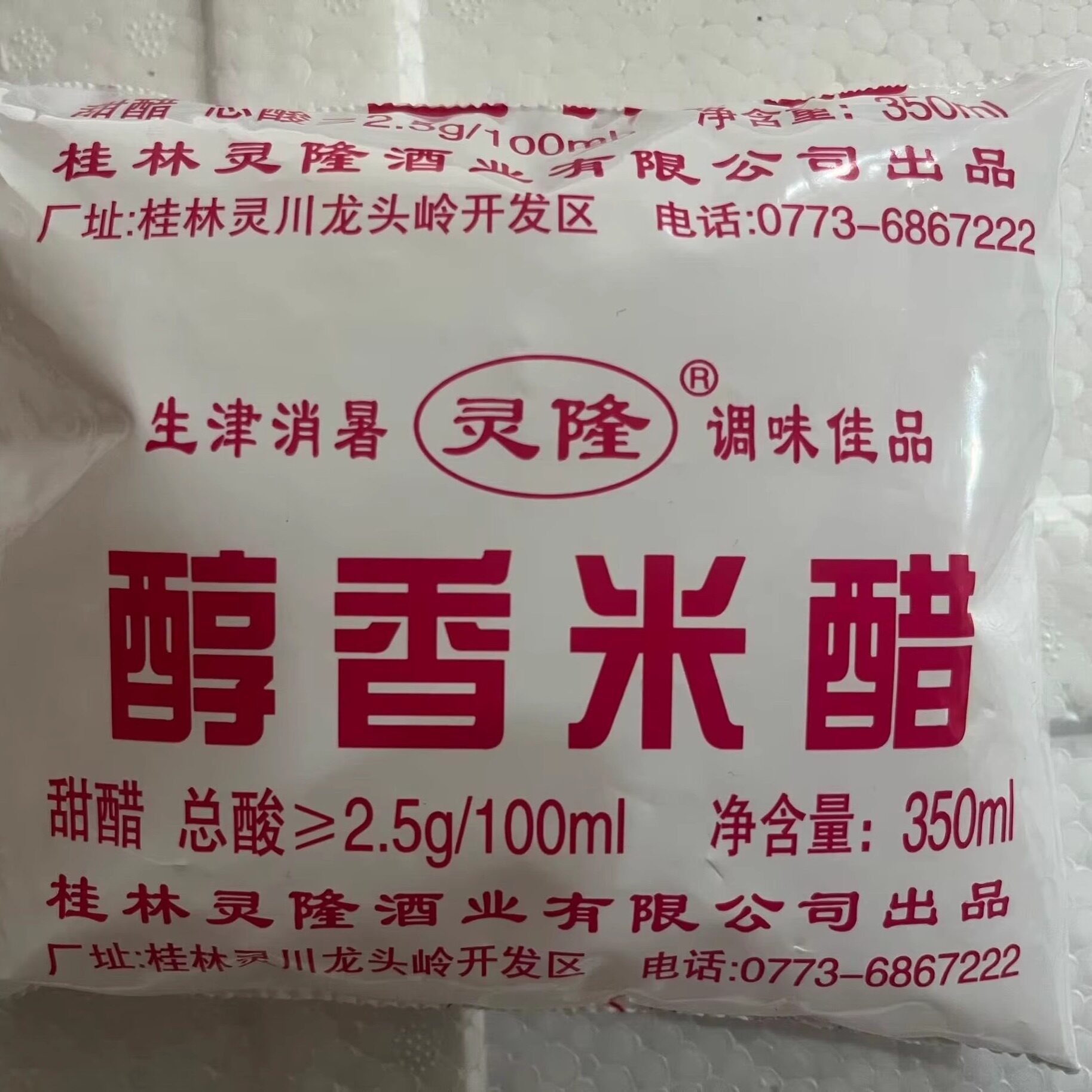 📚 桂林灵隆牌醇香米醋食用米酸20袋白醋袋装泡酸除垢甜醋酸性调味