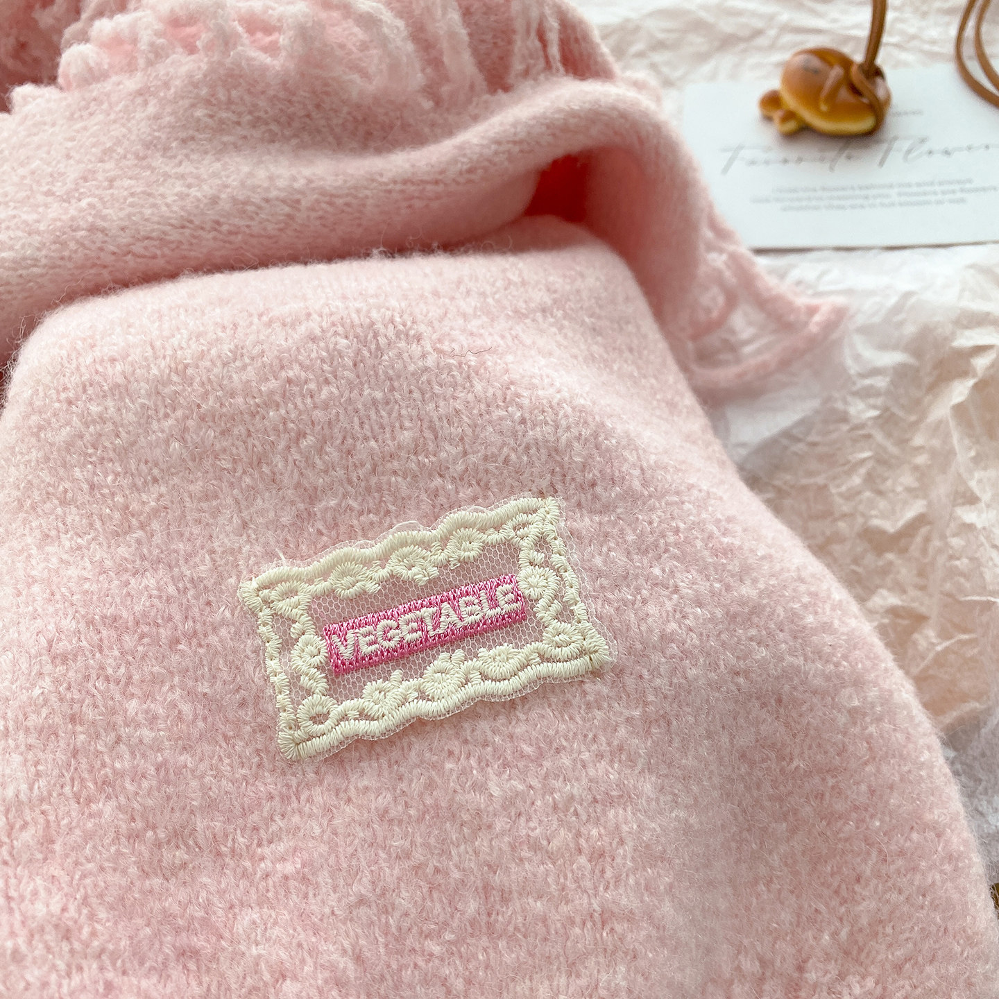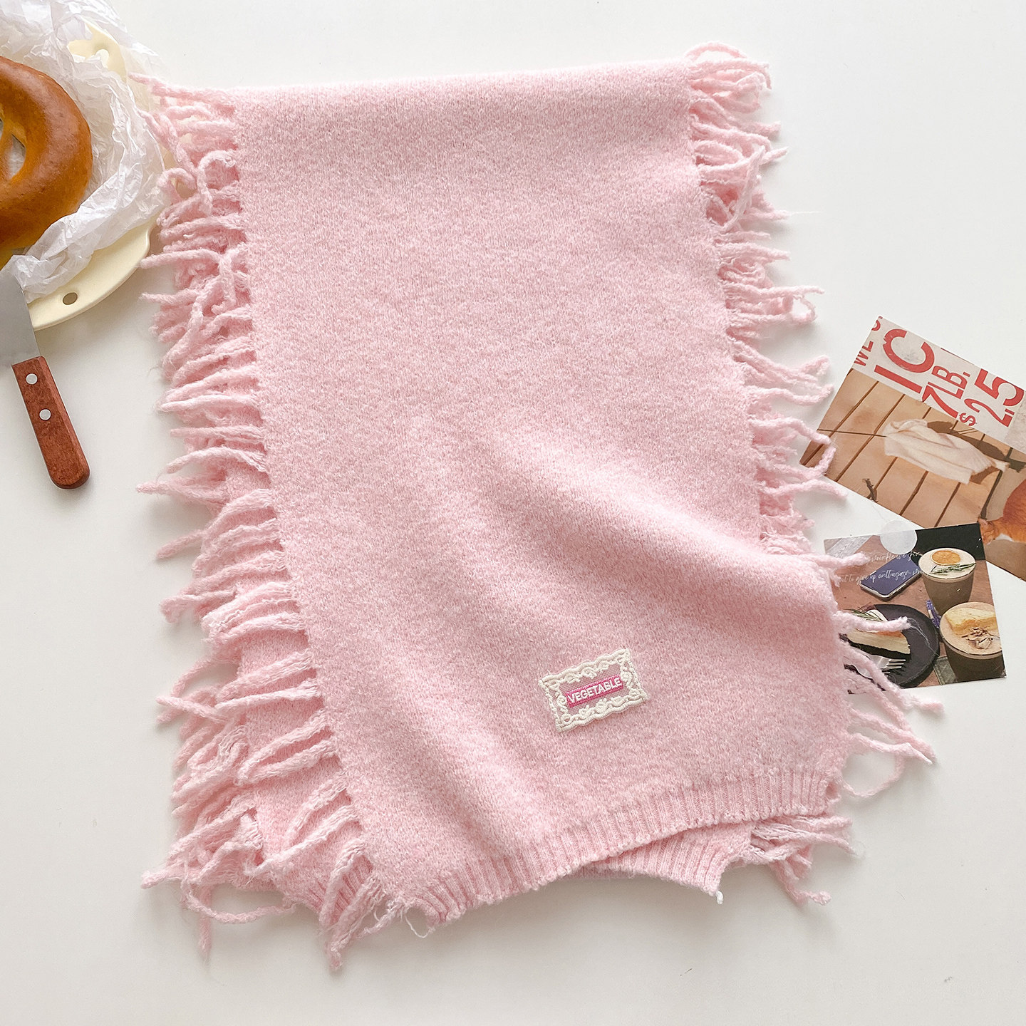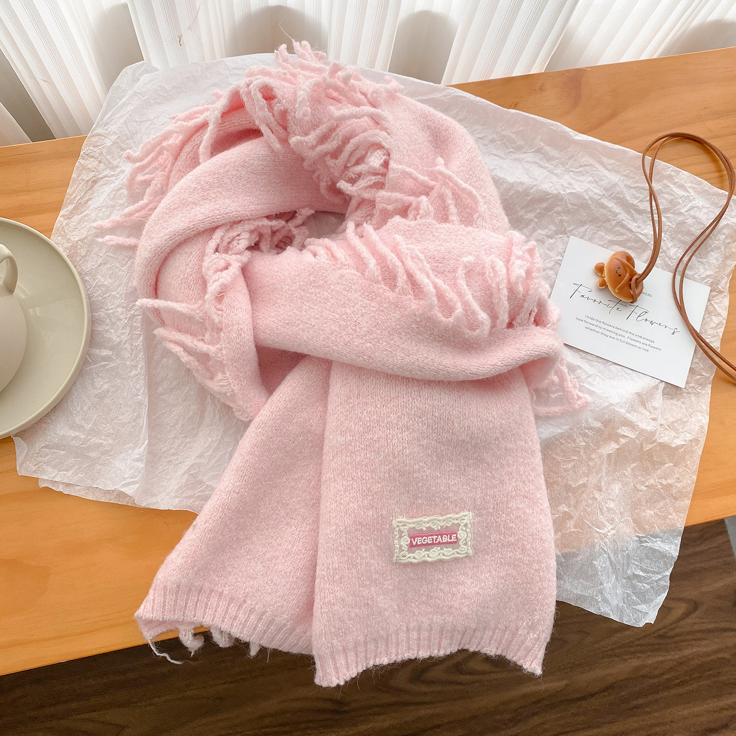 📚 粉色流苏针织毛线厚围巾少女生甜美可爱冬季软糯学生护颈短小围脖