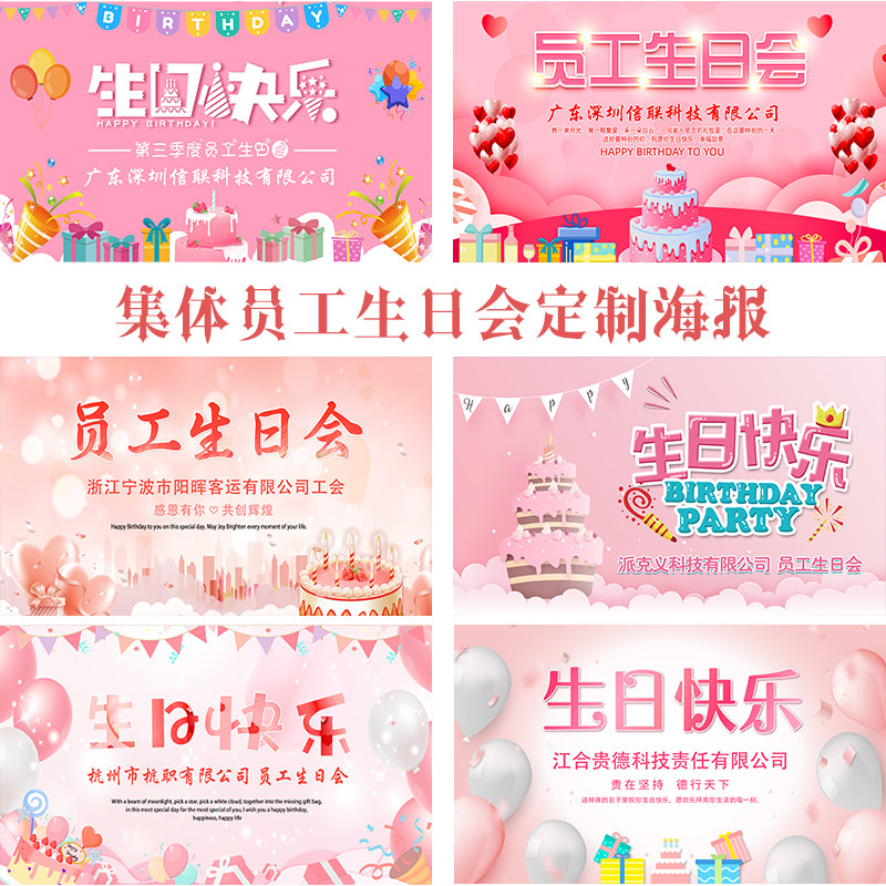 📚 公司集体员工感恩生日会派对聚餐场景布置背景墙海报定制拉花装饰