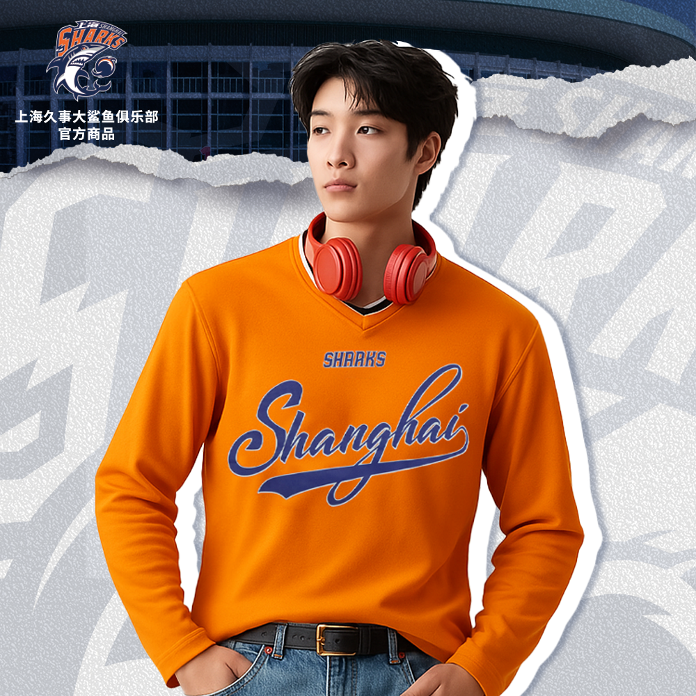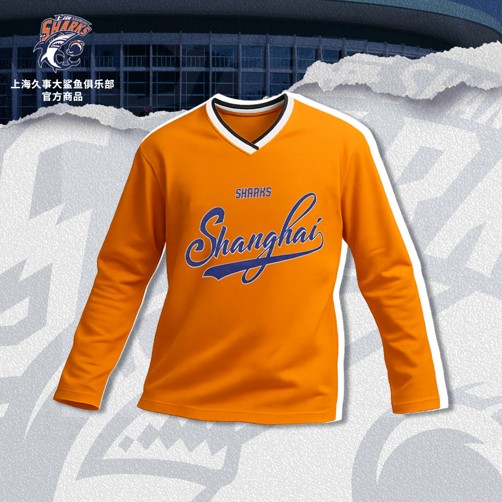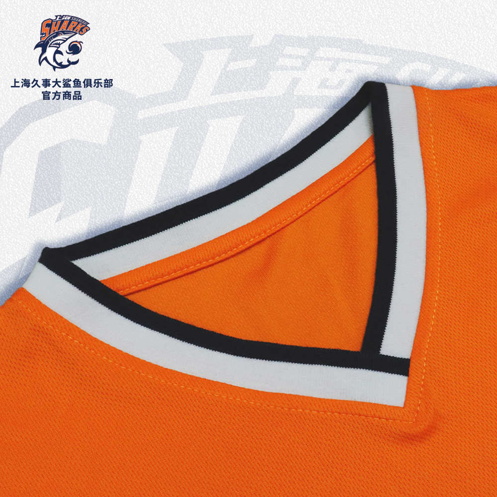 📚 【官方正版】上海久事大鲨鱼俱乐部 | 橙色长袖T恤V领透气潮流