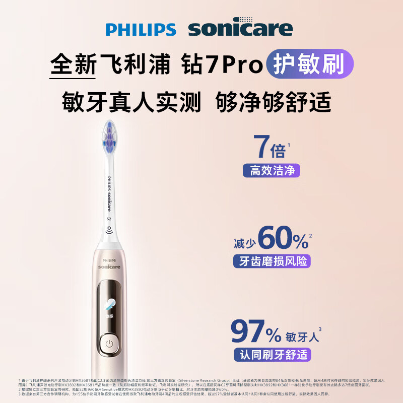 📚 飞利浦电动牙刷HX3892/3792钻石7系成人男女声波软毛护龈智能情侣