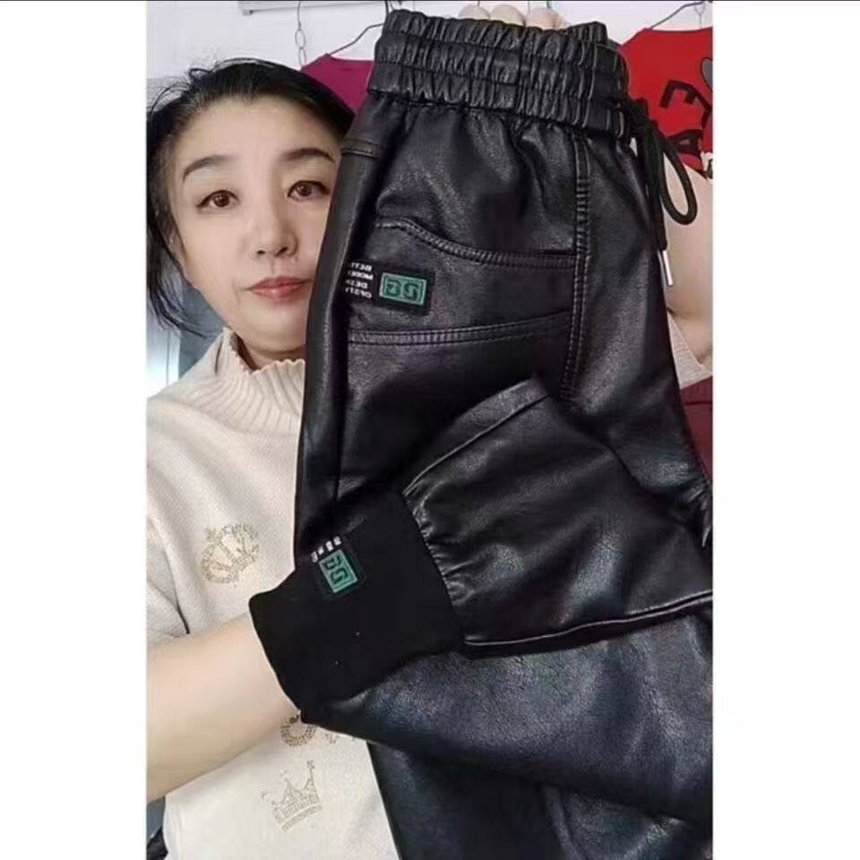 📚 皮裤女加绒加厚2024秋冬新款200斤大码松紧高腰百搭收脚哈伦皮裤