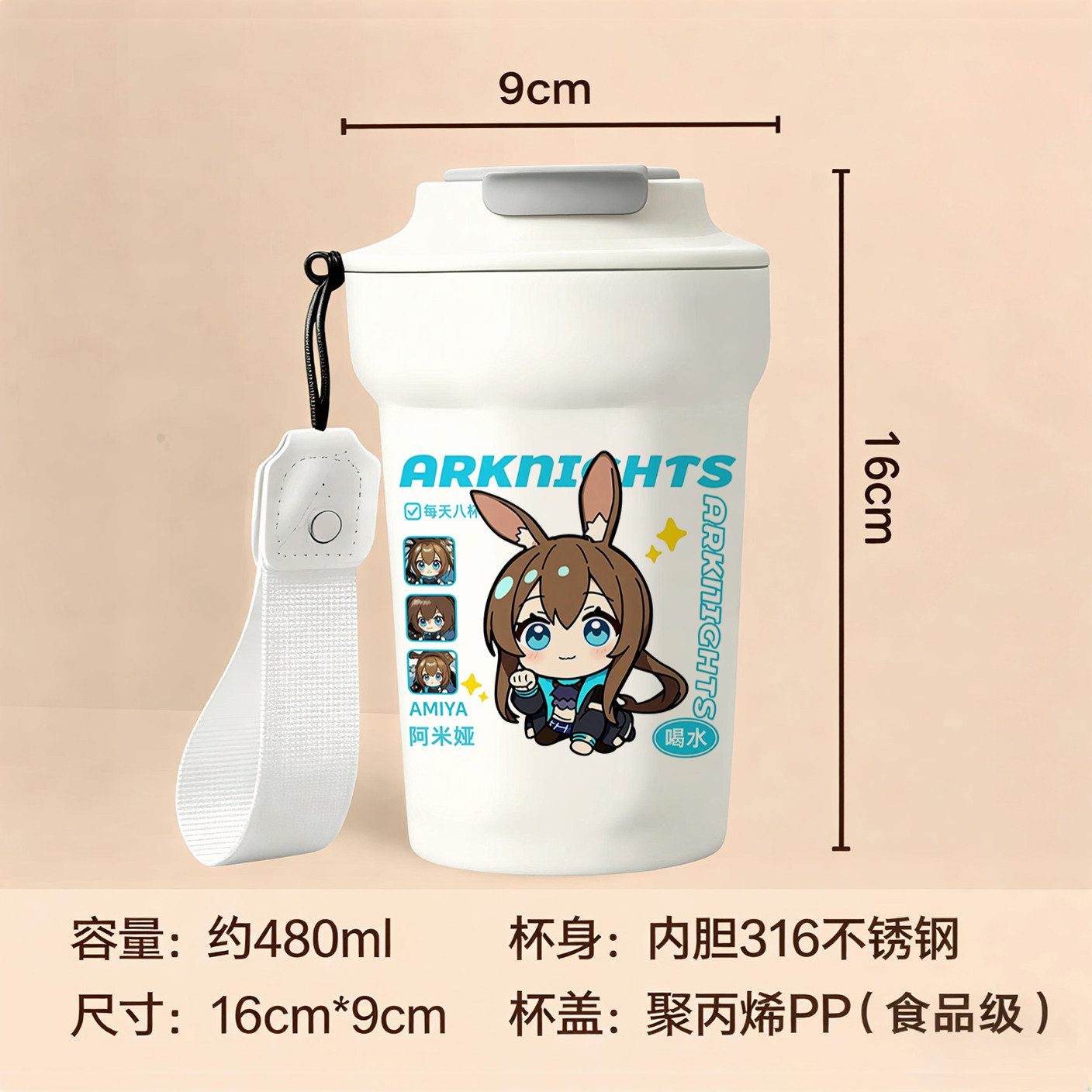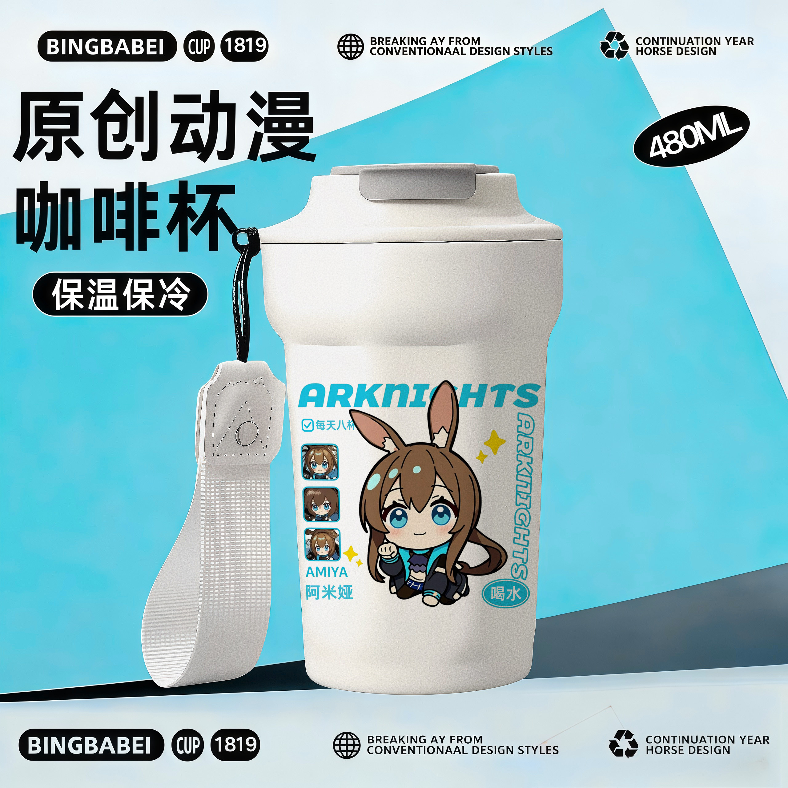 📚 明日方舟游戏周边水杯W阿米娅拉普兰德陈同人不锈钢咖啡保温杯子