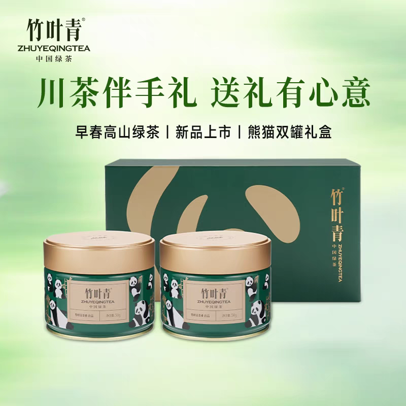📚 峨眉山竹叶青绿茶50克*2罐熊猫礼盒装单芽明前茶配手提袋伴手礼
