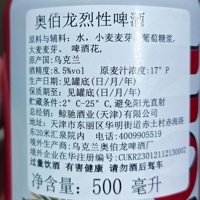 📚 (酒精度8.5度)乌克兰原装进口奥伯龙烈性啤酒500ml拉罐装整箱