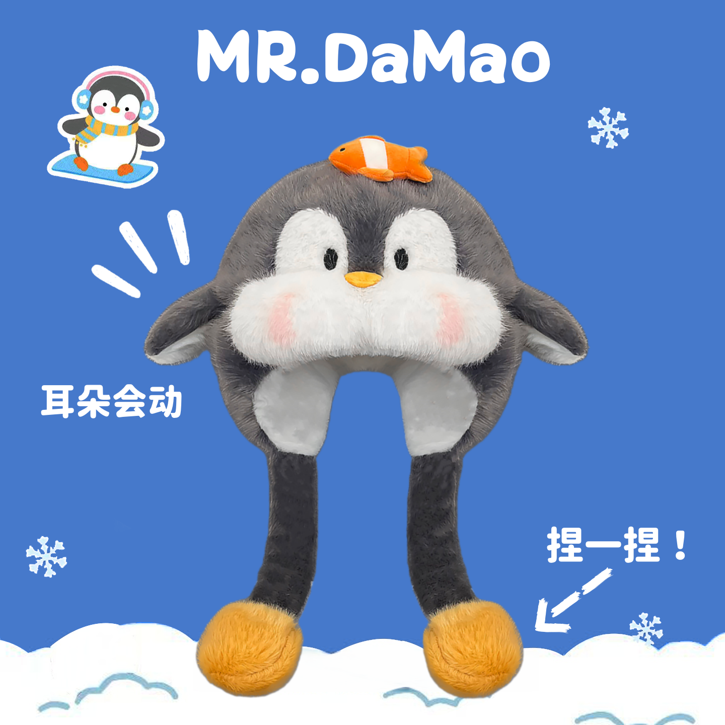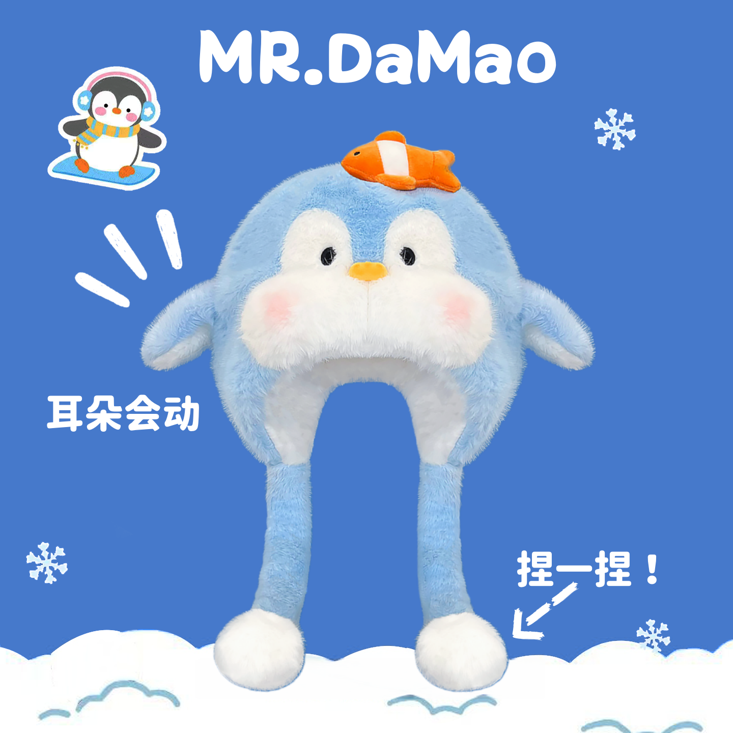 📚 可爱腮红小丑鱼企鹅毛绒雷锋帽女秋冬加厚保暖护耳帽子百搭显脸小