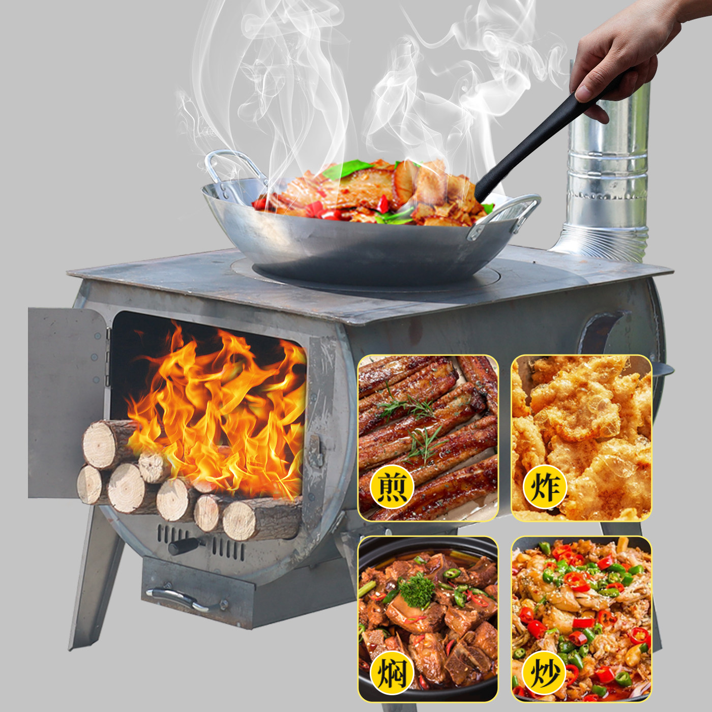 📚 柴火采暖炉冬天室内取暖农村家用无烟烧木柴煤两用新款烤火柴火灶