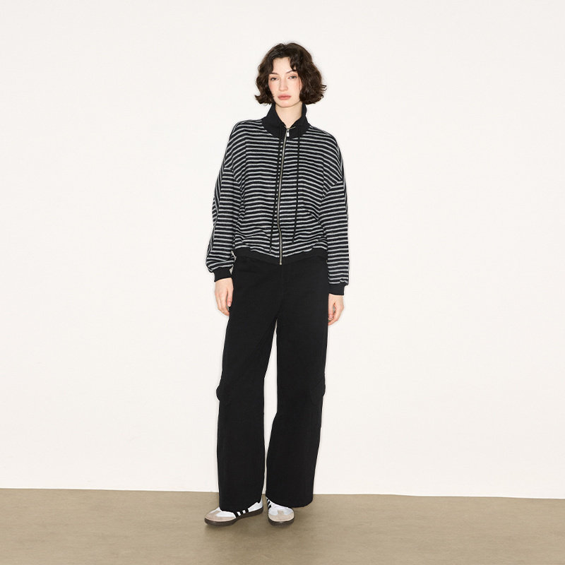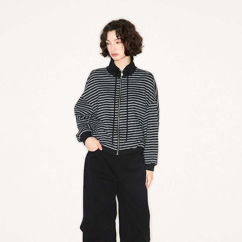 📚 Jamor加墨条纹拉链休闲外套时尚潮流上衣2025秋冬季新款女装