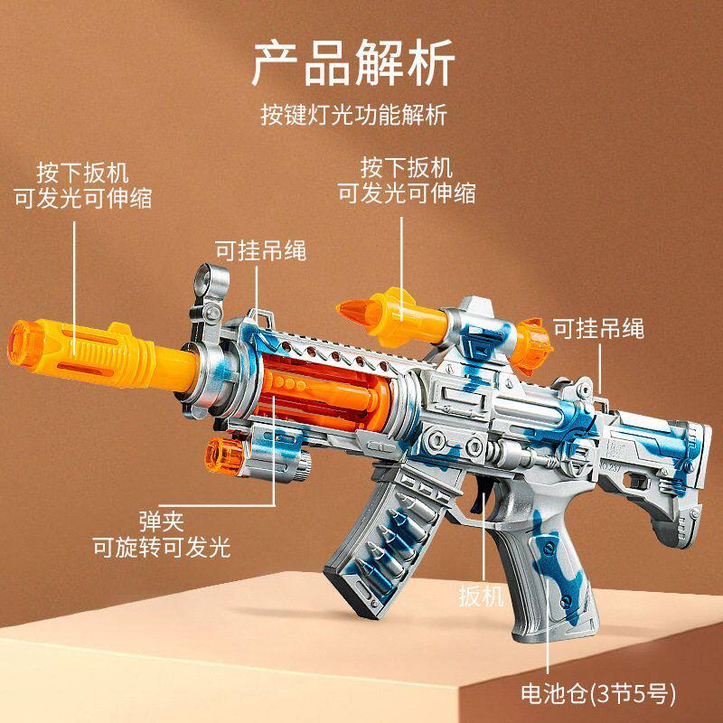 📚 儿童电动声光发光玩具八音枪男孩仿真手枪机枪冲锋枪摆地摊玩具枪