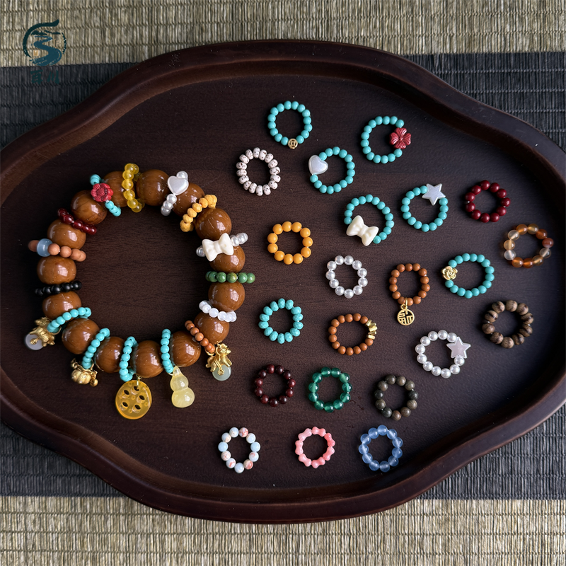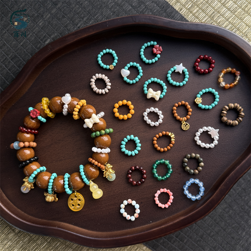 📚 手工编织菱镁矿星月菩提玛瑙跑环diy配件串珠文玩手串隔珠配饰
