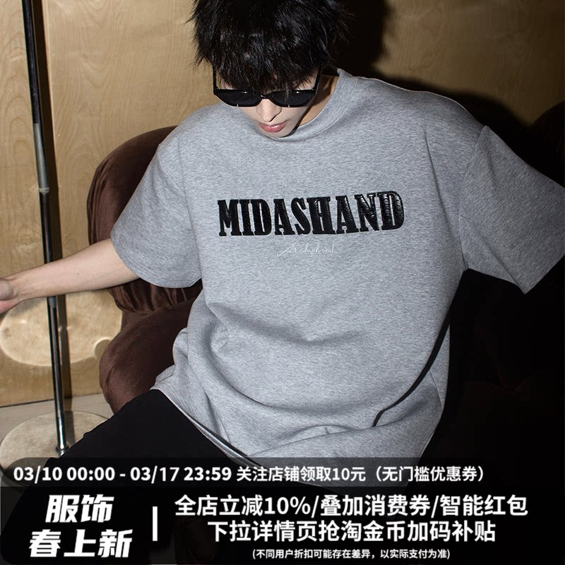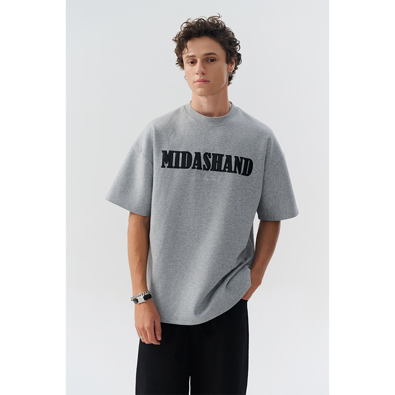 📚 MIDASHAND男生蟒纹字母刺绣短袖夏季美式重磅T恤新款男士圆领上衣