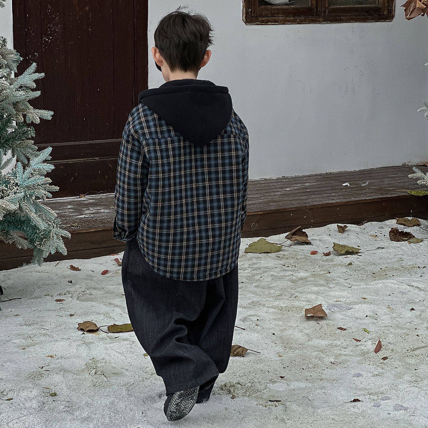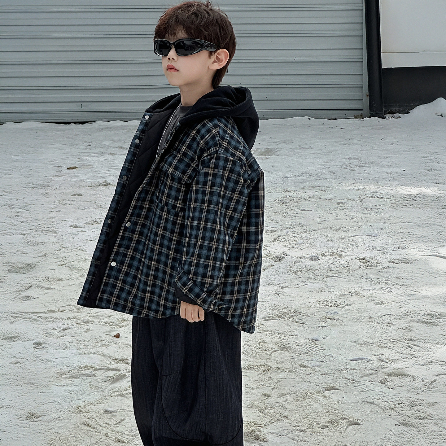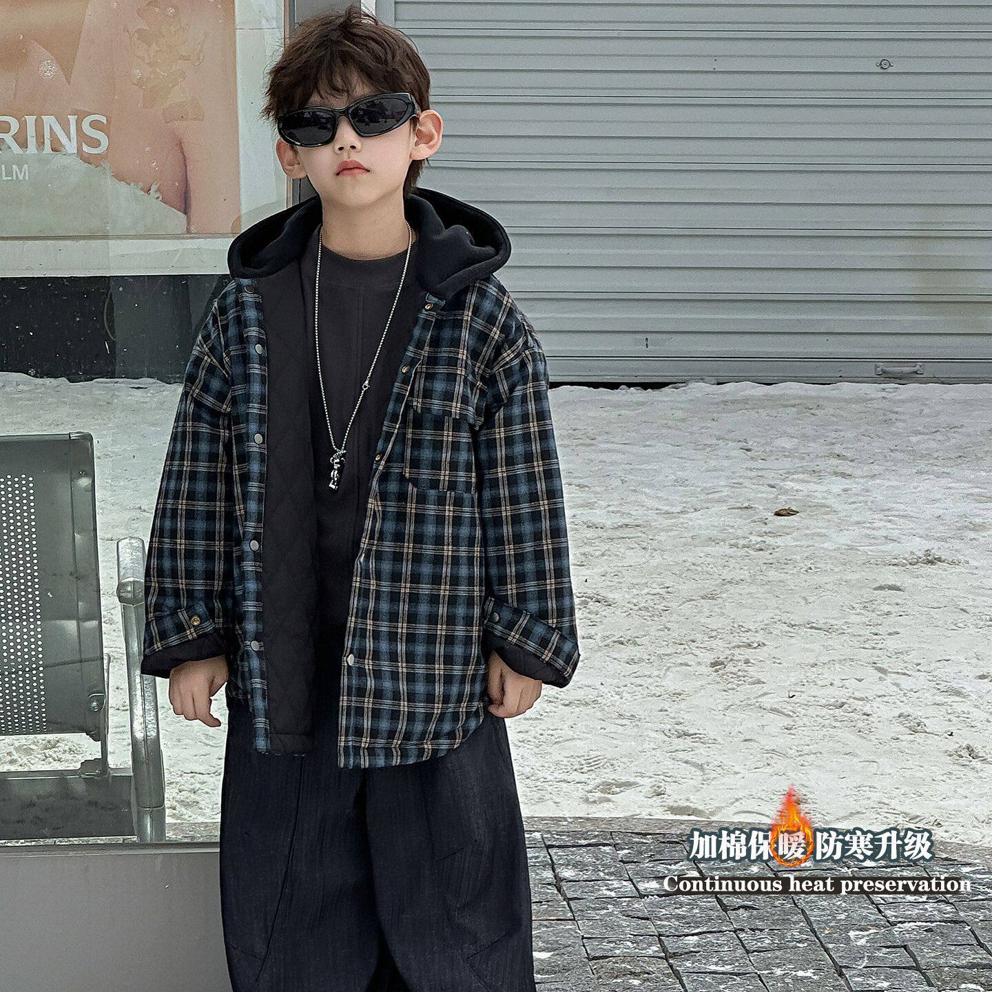 📚 男童棉衣儿童深秋韩版2025新款格子连帽加棉加厚保暖潮范童装外套
