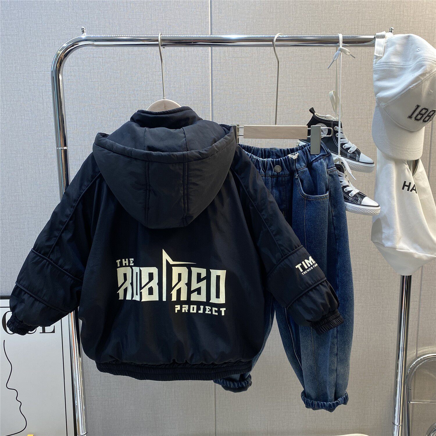 📚 男童外套深秋冬季新款炸街中大童夹棉加厚儿童装拼色连帽棉衣