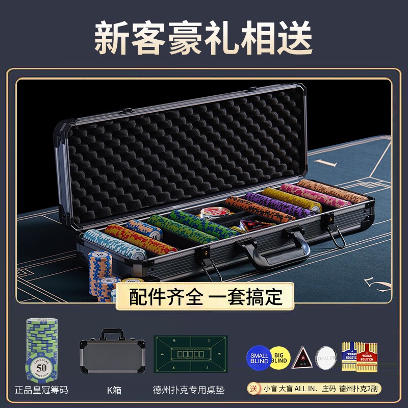 📚 德州扑克筹码套装皇冠黏土麻将棋牌室专用筹码币高档铝箱德扑桌布