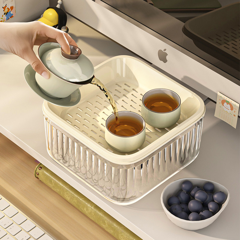 📚 工位一人茶盘办公室泡茶过滤桶干泡茶台神器小型迷你沥水盘茶托盘
