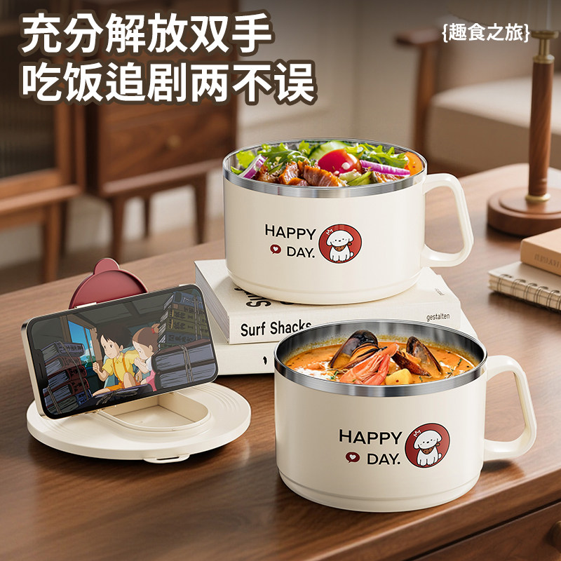 📚 304不锈钢泡面碗带盖大容量可滤水学生宿舍泡面神器上班个人饭盒