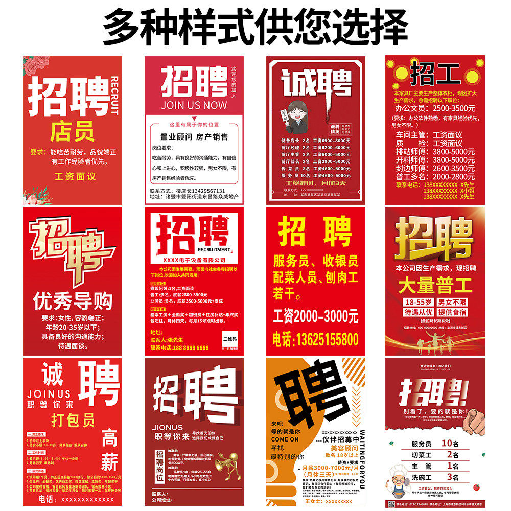 📚 招聘海报设计招工广告贴纸招聘广告牌子招聘广告海报定制展示牌