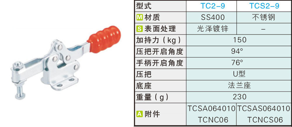 📚 同款替代工装快速夹钳TC2-9 不锈钢水平式夹具TCS2-9 固定肘夹