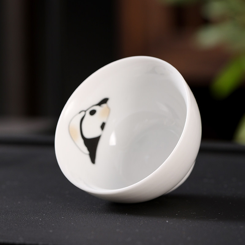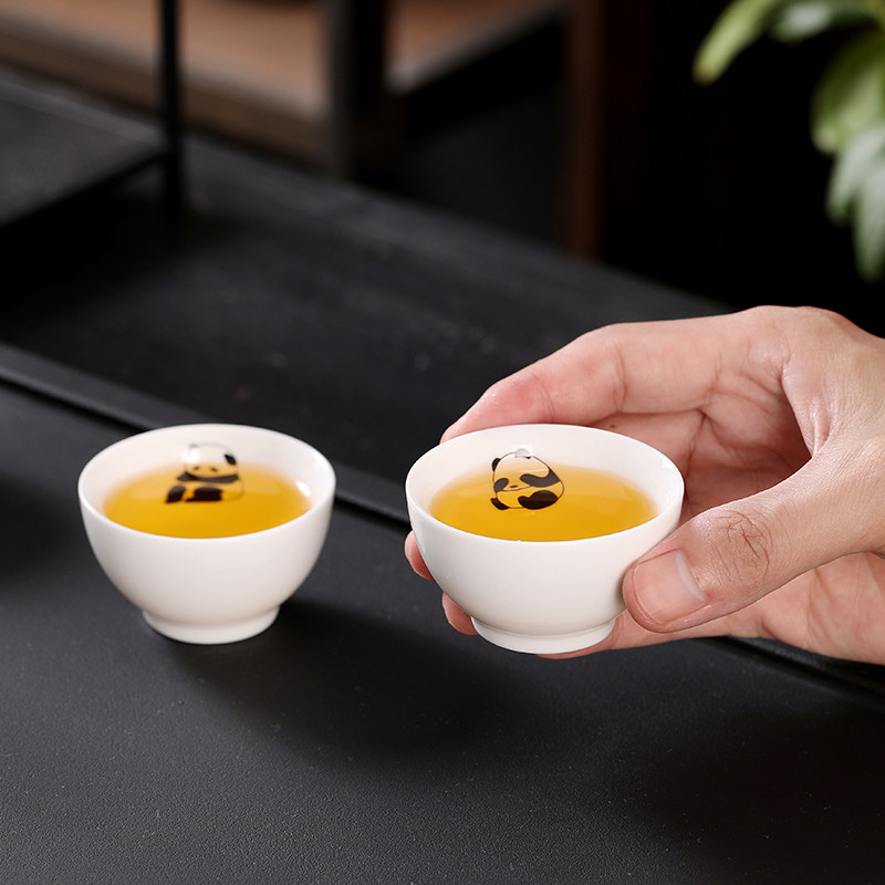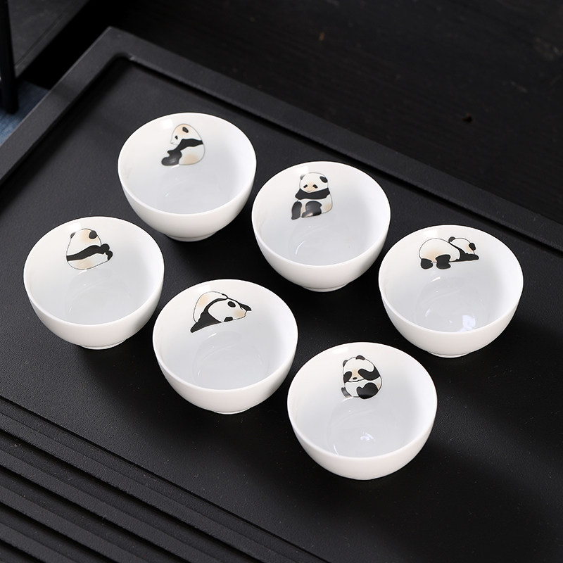 📚 新款小熊猫茶杯羊脂玉功夫六个装陶瓷小茶杯家用待客喝茶专用客杯