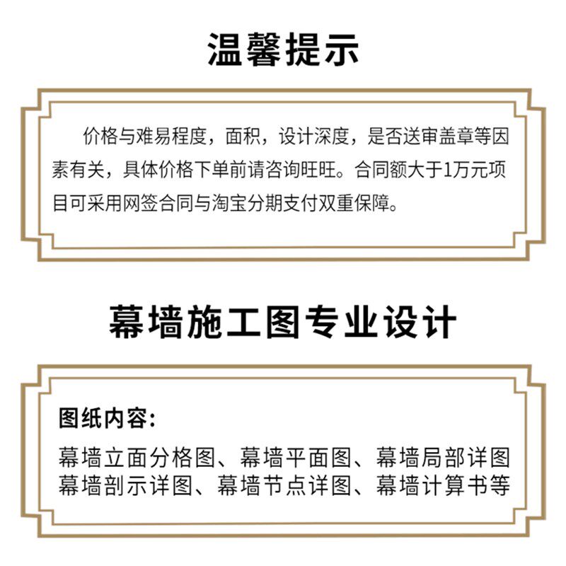 88¥ CZ193 fCuZUFKhlDl¥ https://m.tb.cn/h.idcHX7g 幕墙深化设计玻璃石材铝单板节点门窗雨棚大样钢结构计算书施工图 --------------------- 【原售价】233元 【现售价】233元。
