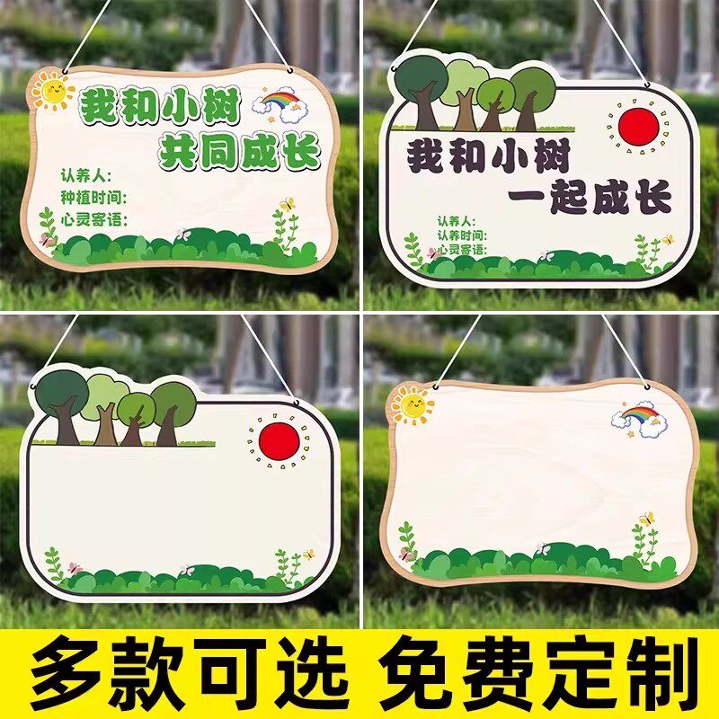 📚 植树节挂牌树木认养牌空白手写diy装饰挂牌标签牌小学幼儿园学校植树节活动树牌我和小树一起成长寄语牌定制