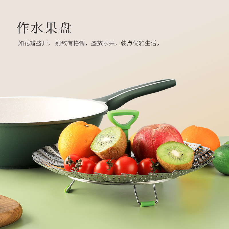 📚 蒸笼不锈钢蒸格可折叠伸缩蒸架家用蒸屉蒸盘蒸锅蒸馒头多功能通用