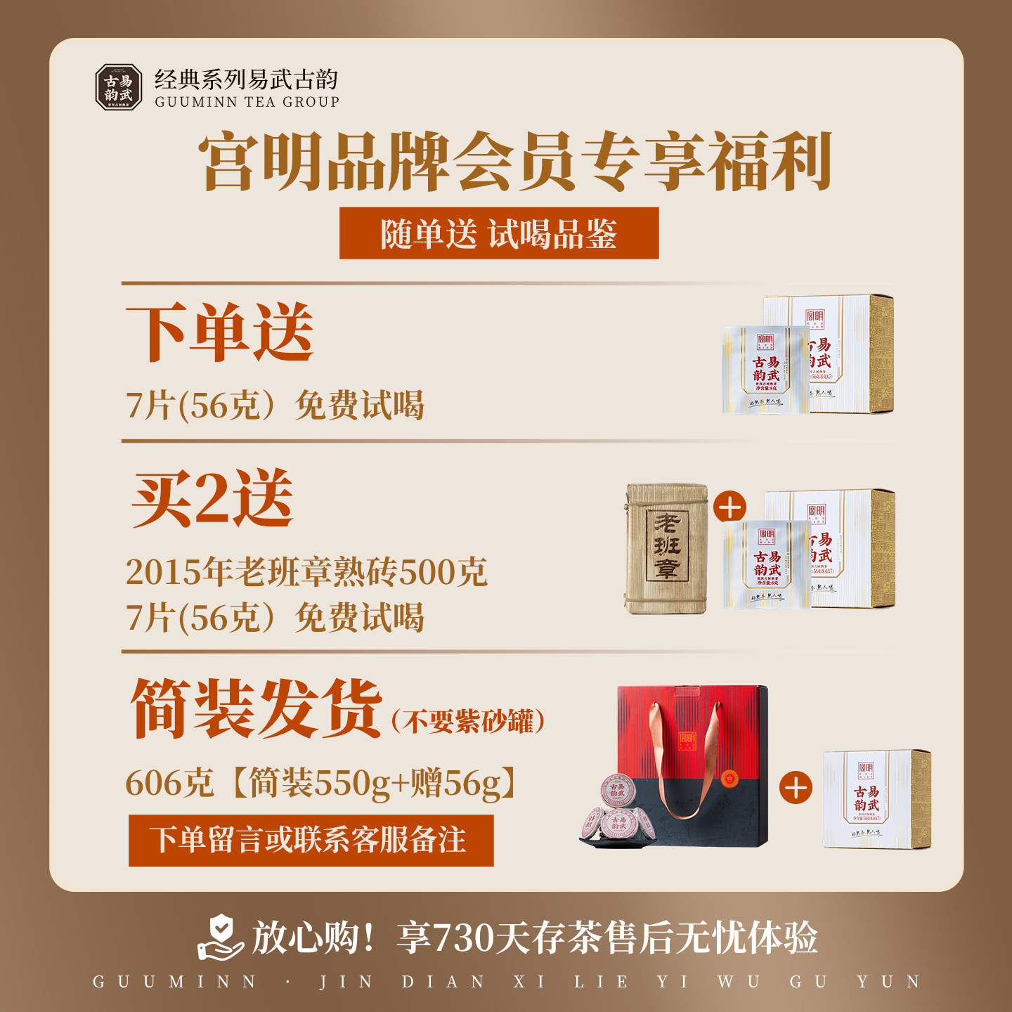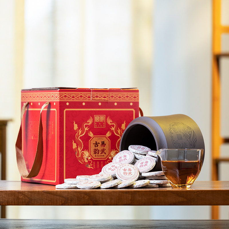 📚 宫明云南普洱茶熟茶小圆饼六年陈易武古树熟茶小饼茶叶500g礼盒装