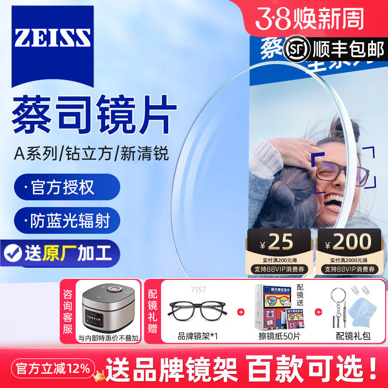 📚 蔡司近视眼镜片1.74超薄泽锐防蓝光钻立方新清锐1.67视特耐A系列