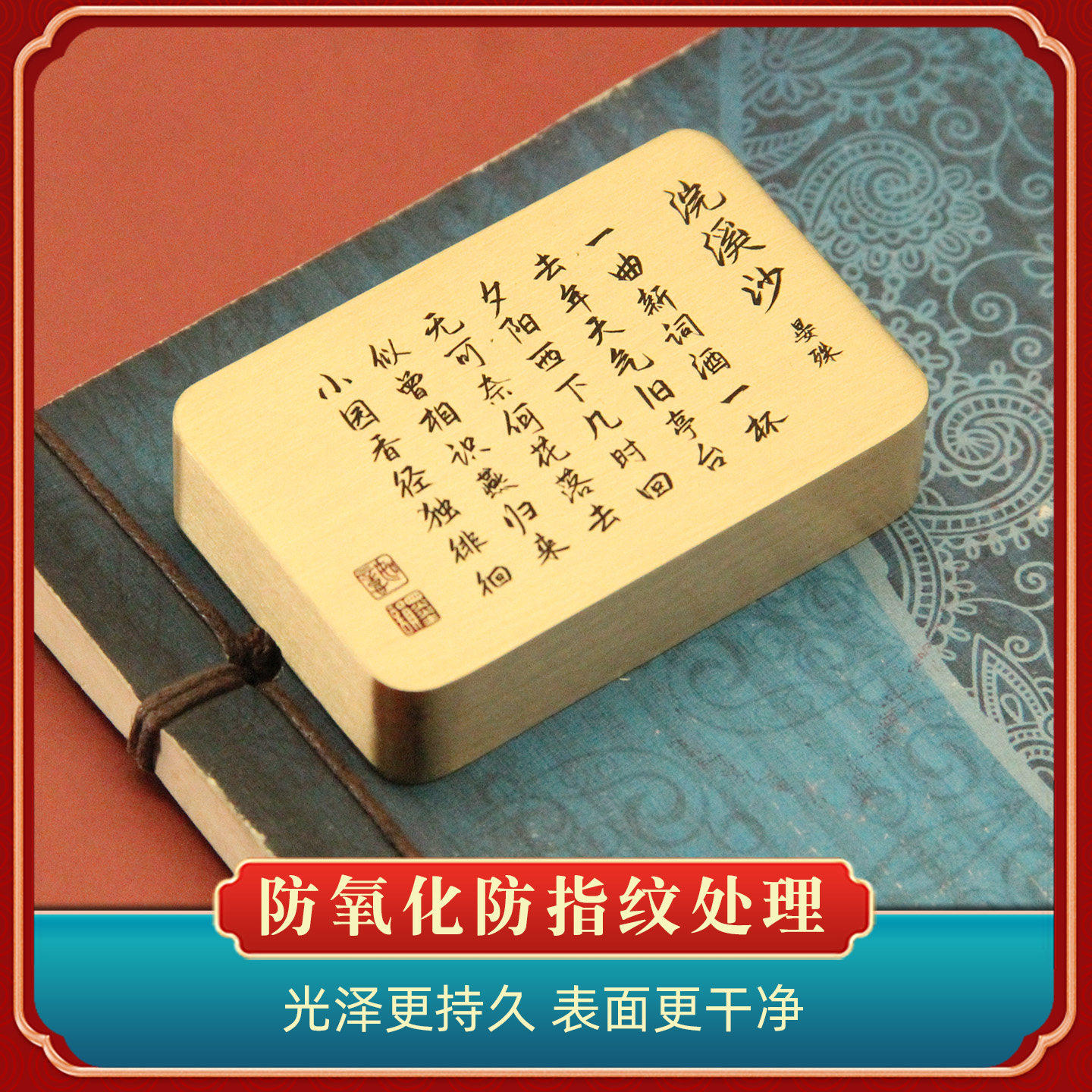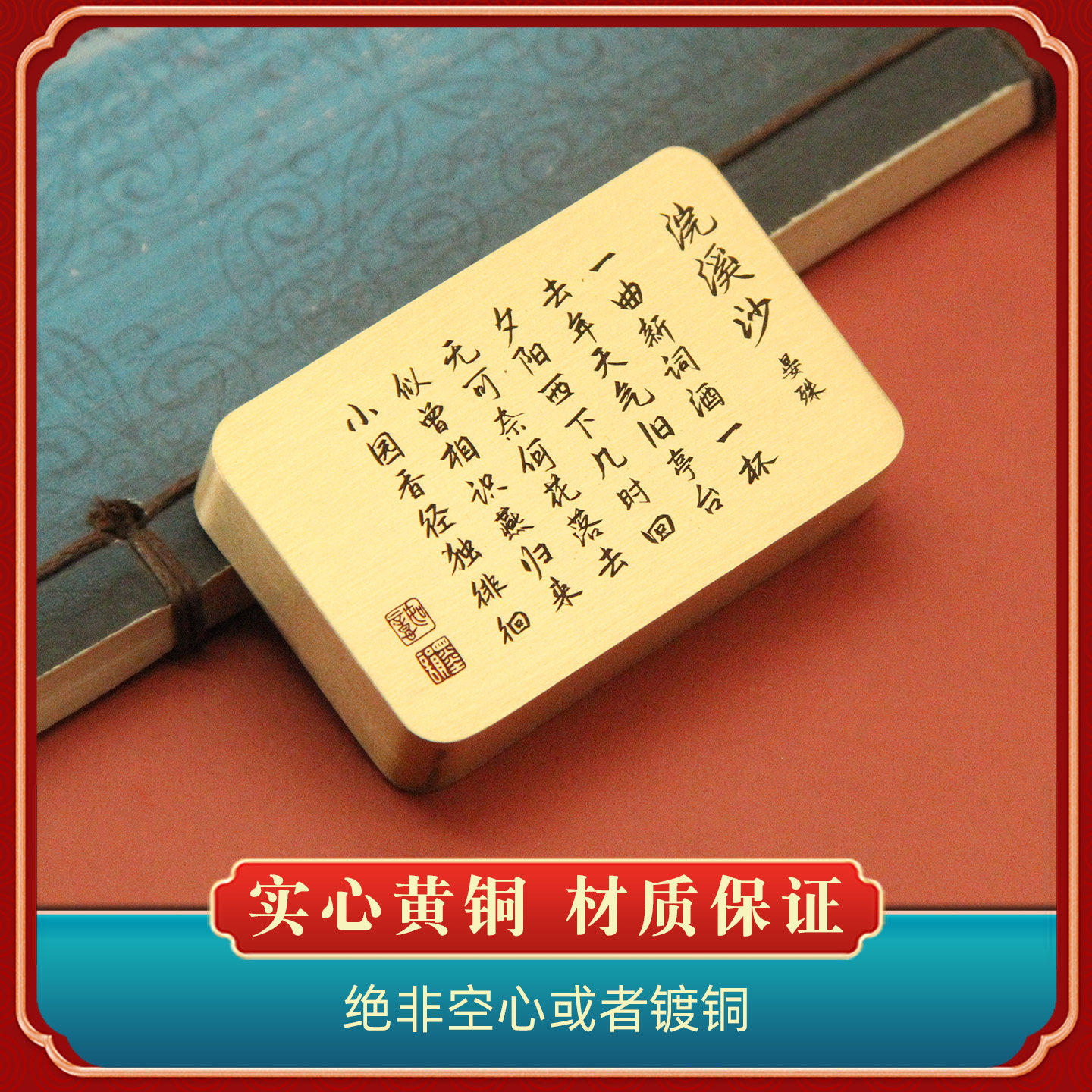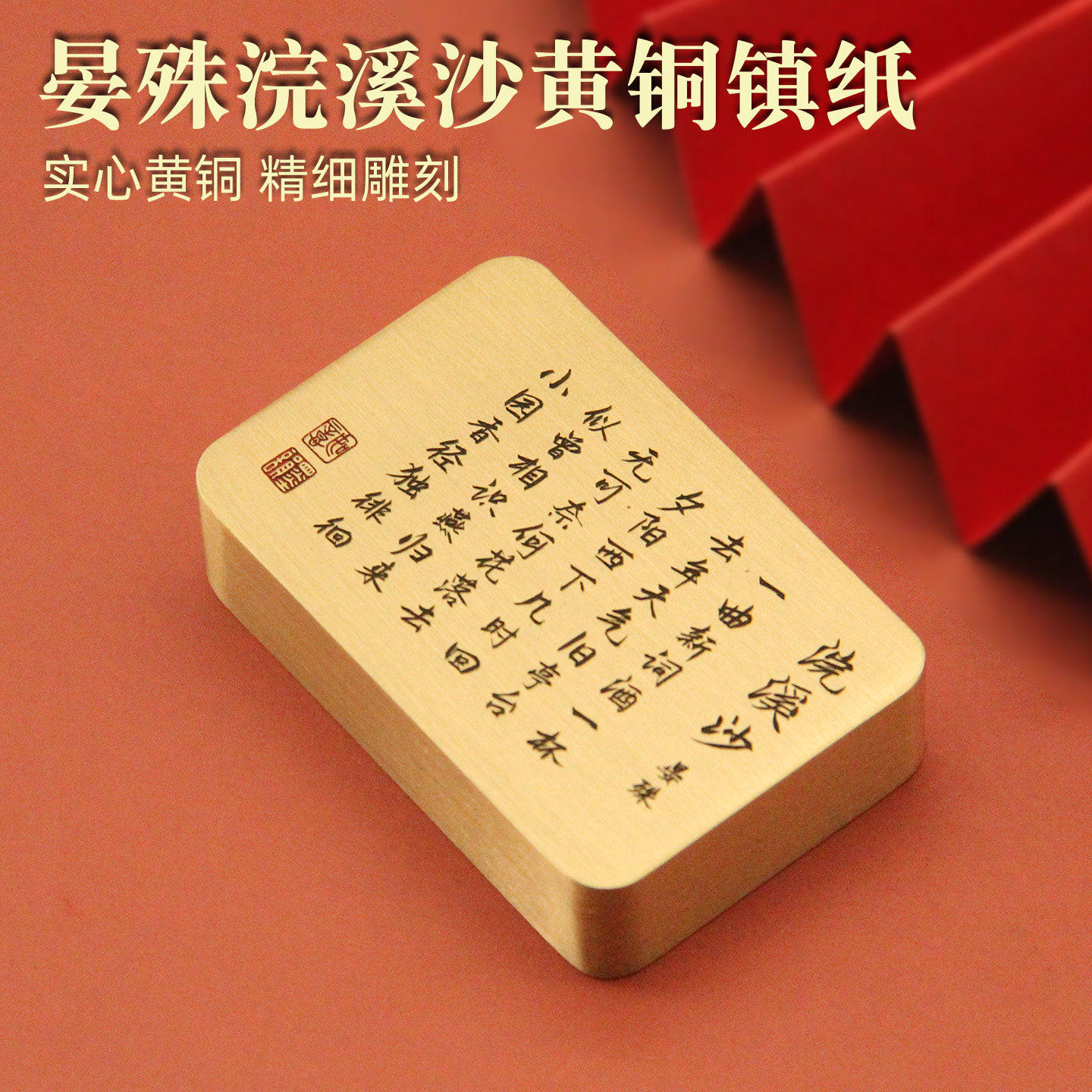 📚 书边 晏殊浣溪沙黄铜镇纸实心书法压纸文房文创礼品摆件实心镇尺