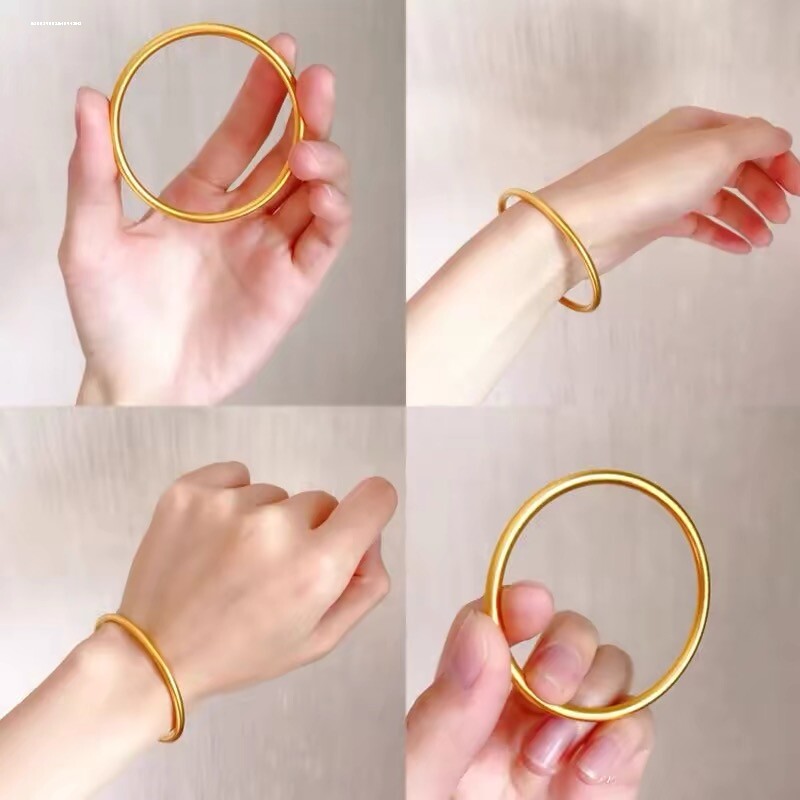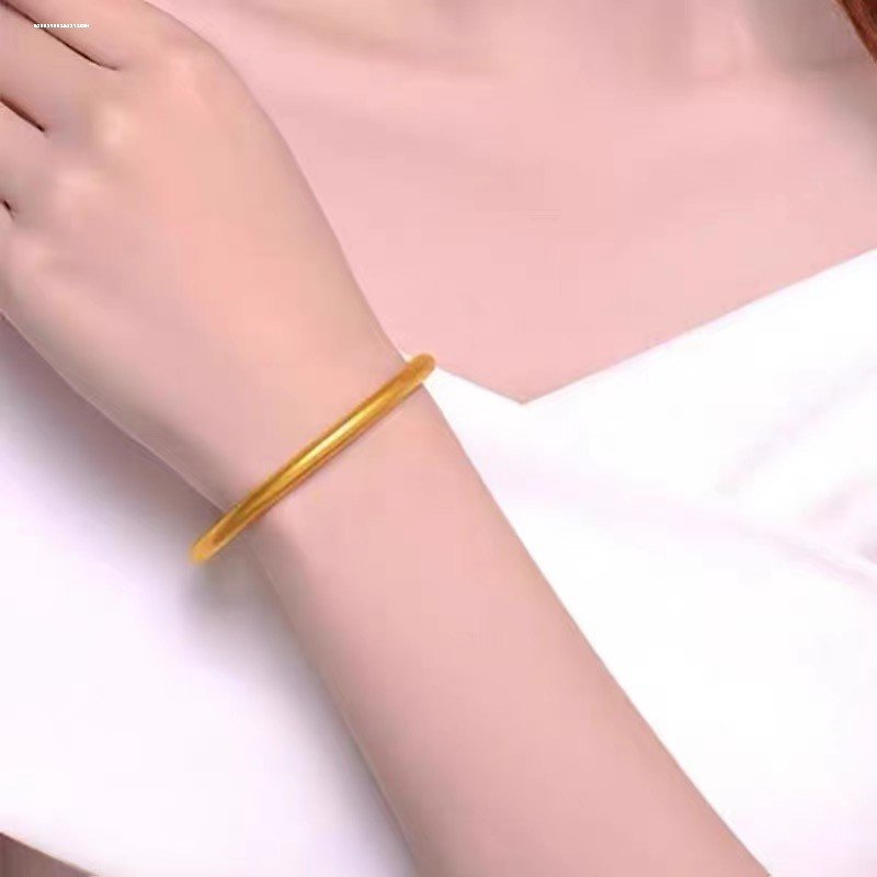 📚 古法仿真黄金实心传承素圈沙金手镯中国风送闺蜜镀金不掉色