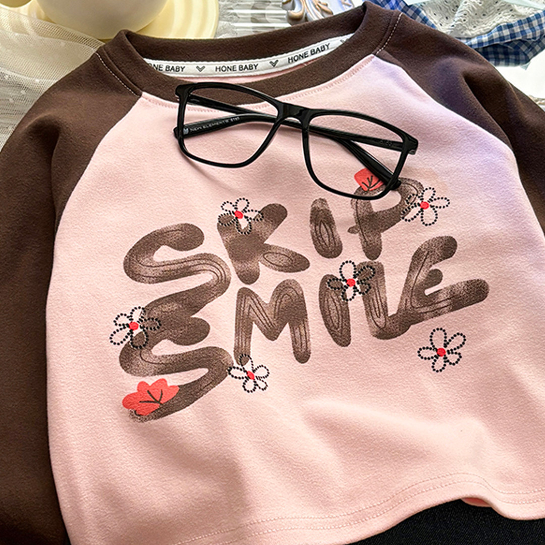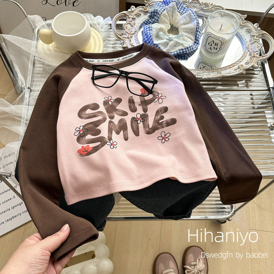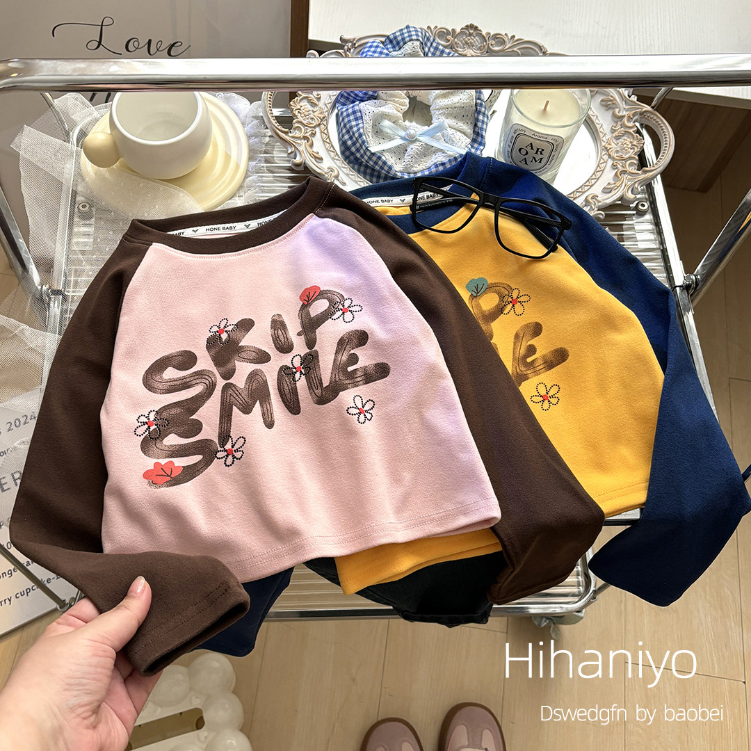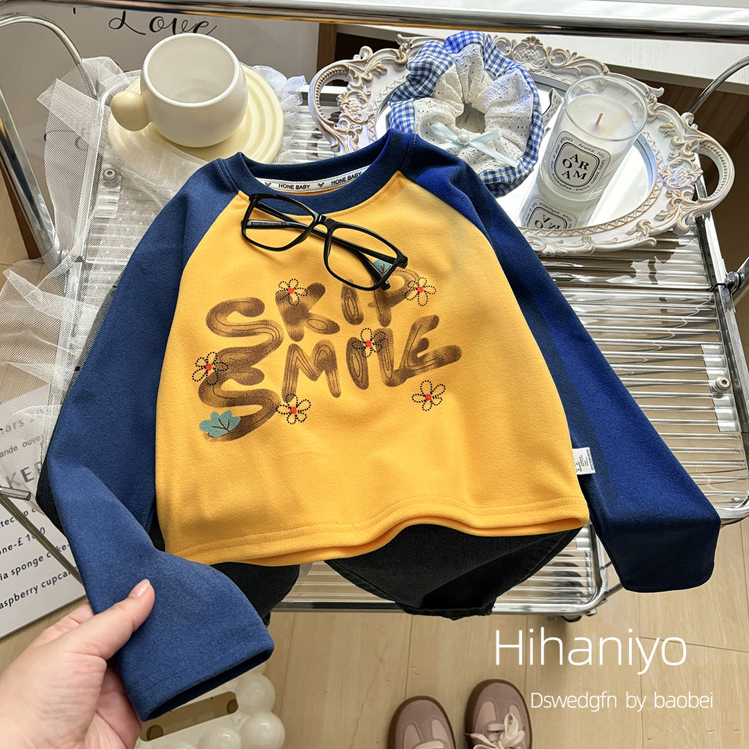 📚 儿童秋款T恤 宝宝撞色休闲长袖内搭女童卡通圆领打底上衣设计款潮