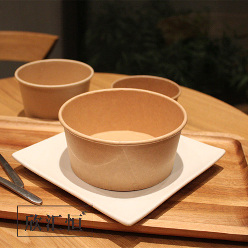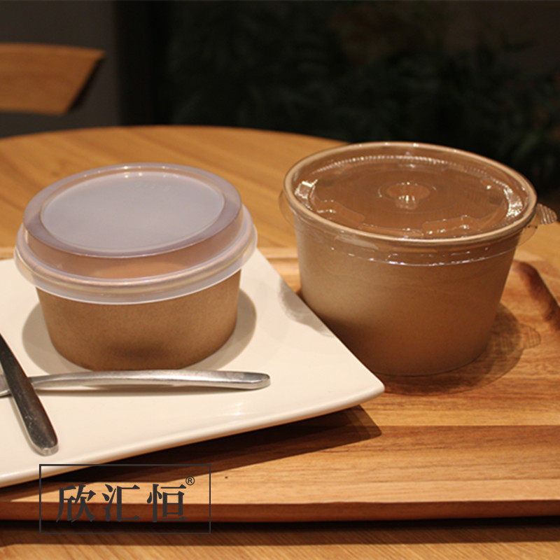 📚 一次性本色纸碗牛皮纸碗圆形带盖打包外卖餐盒100只 支持定制