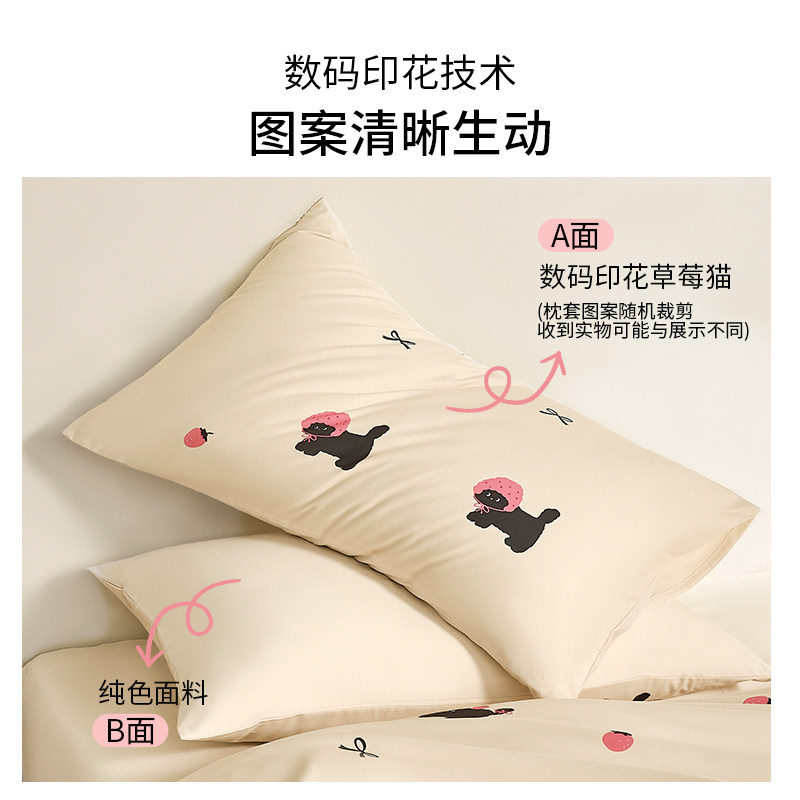 📚 100支纯棉四件套全棉磨毛可爱小猫数码印花床单秋冬新款磨毛床品