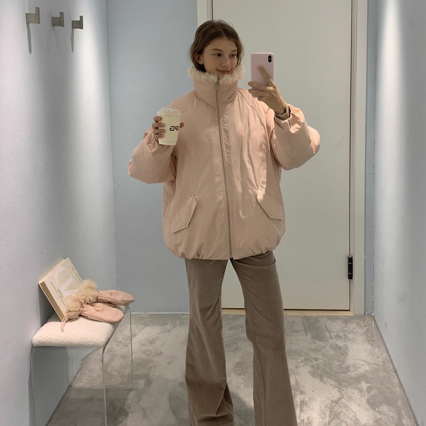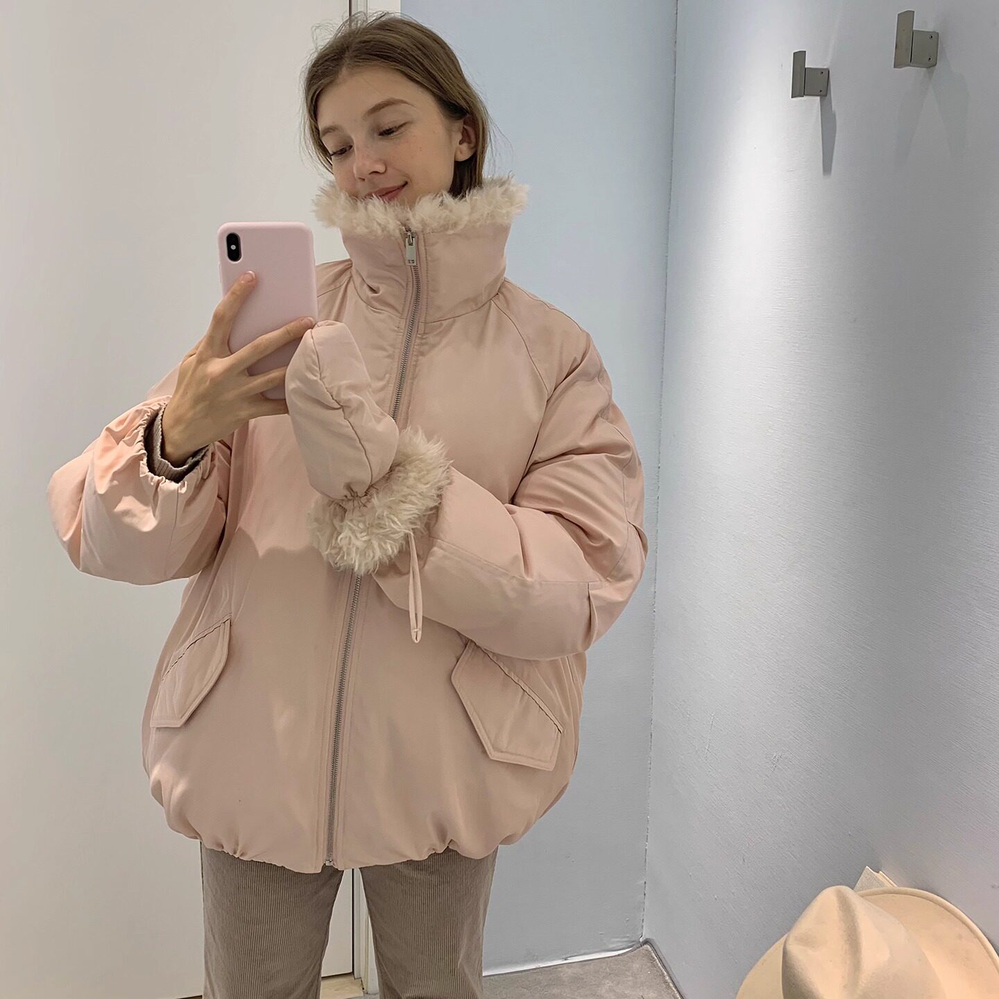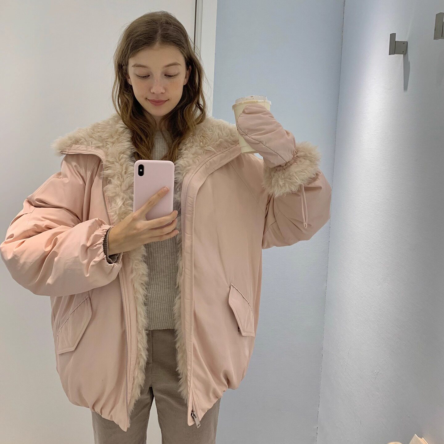 📚 KERNEL COSMOS都柏林粉雾 冬甜美氛围拼接毛毛花苞手套派克羽绒服