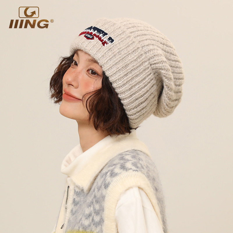 📚 毛线帽子女秋冬季超大版型显脸小宽松加厚大头围保暖针织帽堆堆帽
