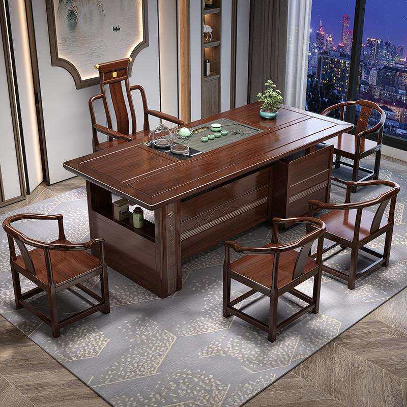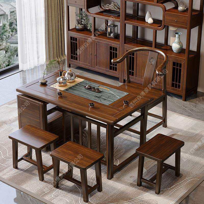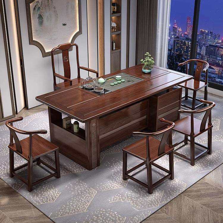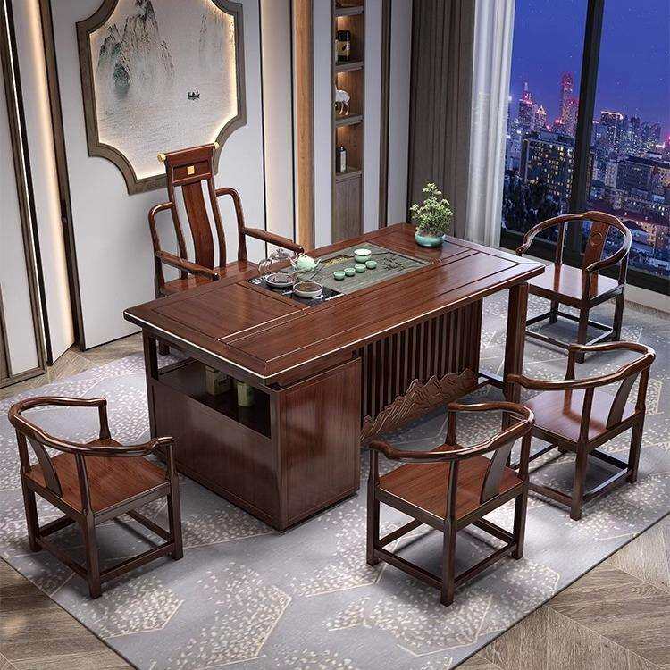 📚 新中式乌金木茶桌椅组合实木泡茶桌办公室客厅家用茶桌全套茶台