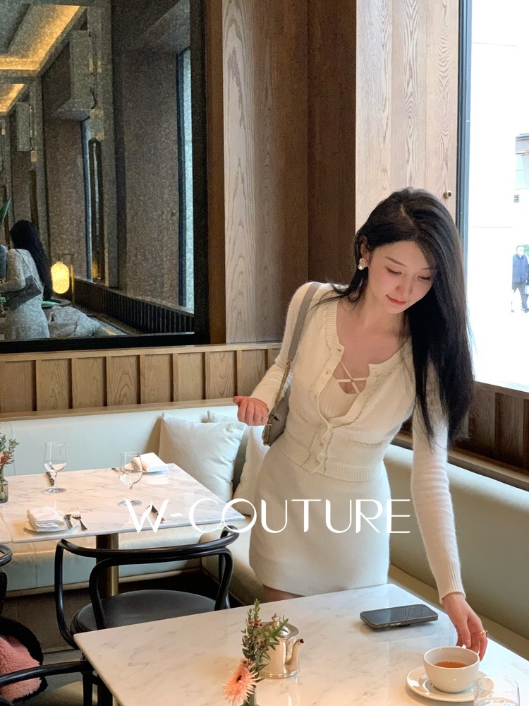 📚 开心果Wcouture原创 嗲气的毛茸茸兔绒羊毛针织开衫短裙修身套装
