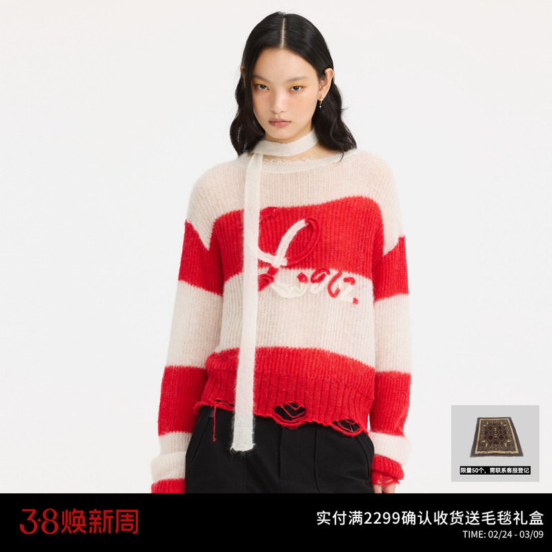 📚 【节日限定】REVAN芮范盘花绣条纹毛衫RL10601130