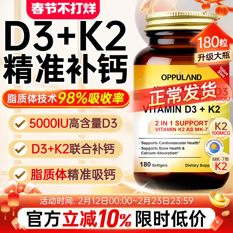 📚 进口活性维生素D3K2镁三合一胶囊中老年补钙成人钙片脂质体d3正品