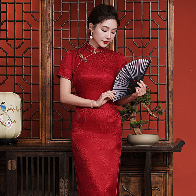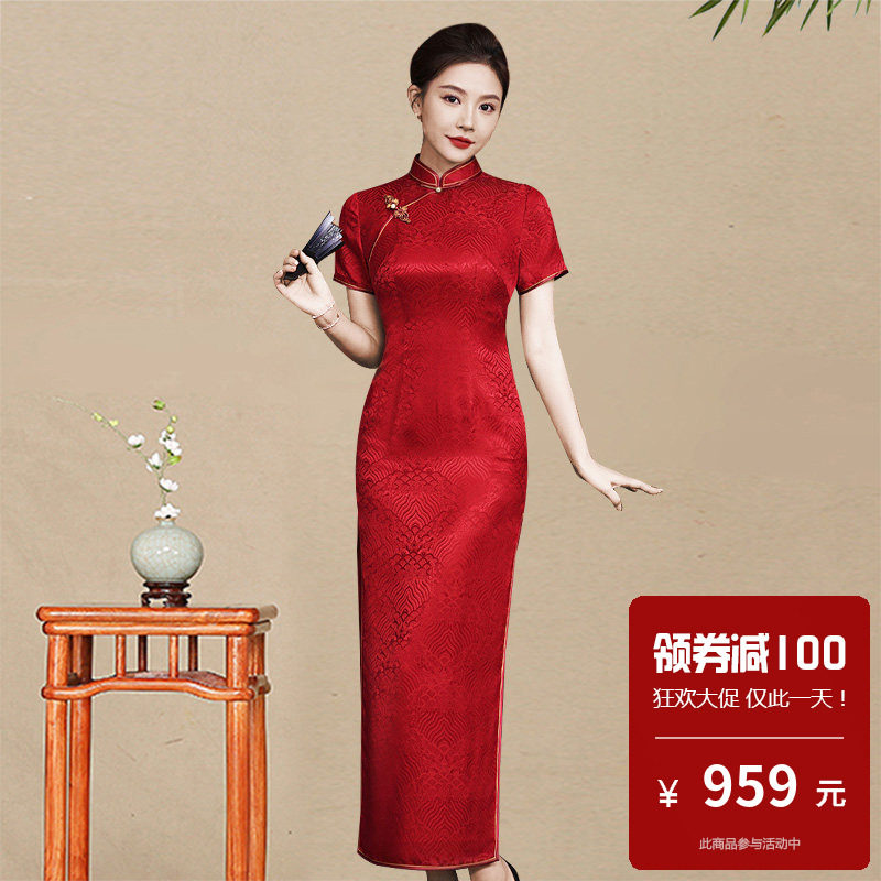 📚 桑蚕丝真丝旗袍长款老上海复古新中式高级感苏杭海派妈妈装婚宴装