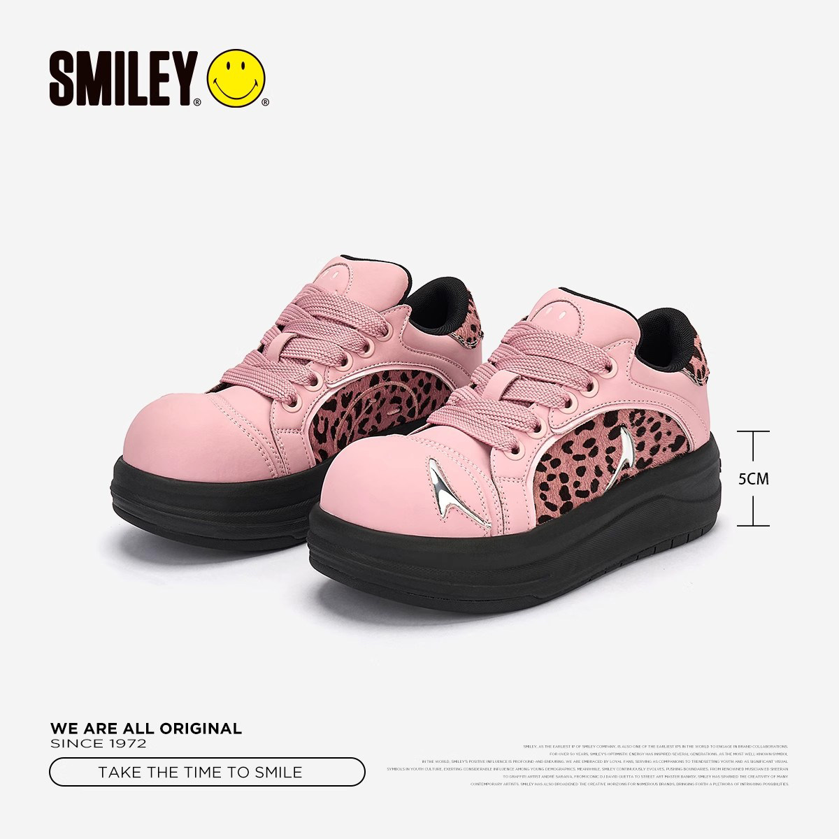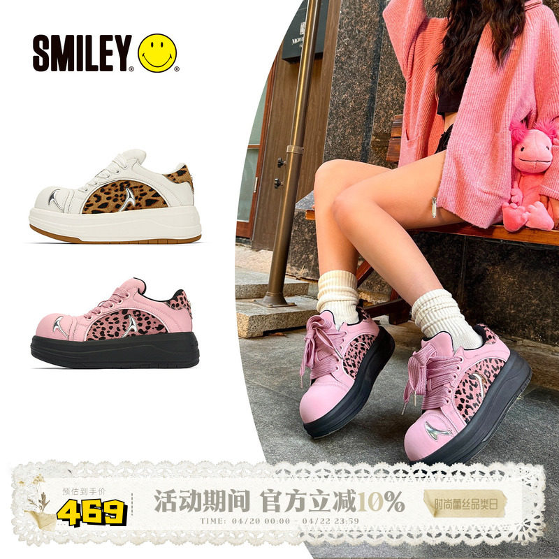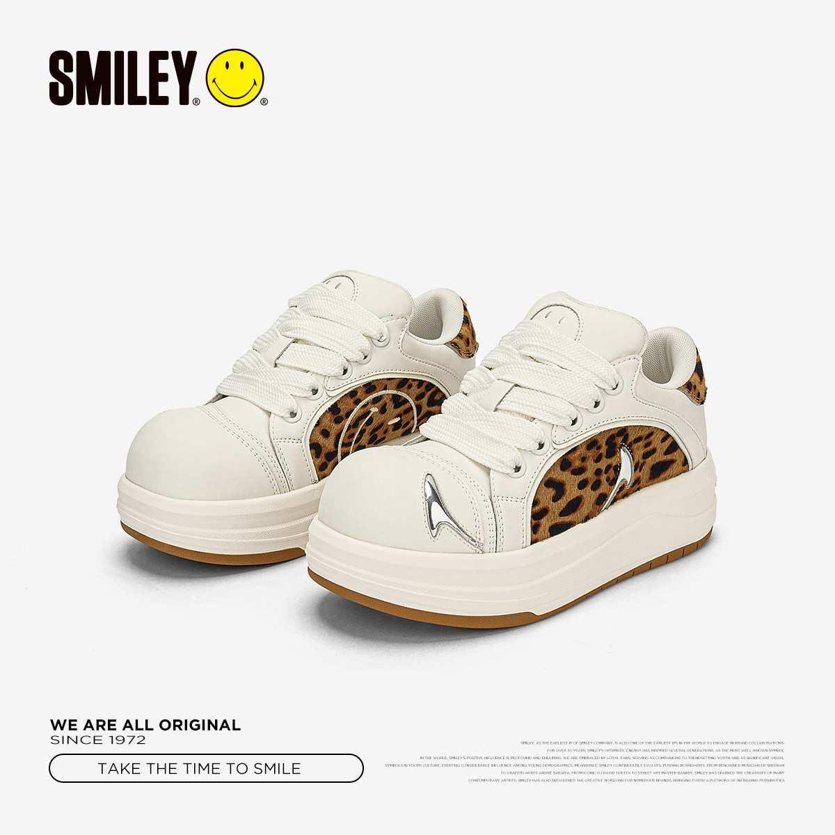 📚 【刘嘉欣同款】SMILEY笑脸白鲸豹纹大头鞋休闲板鞋厚底增高女鞋子