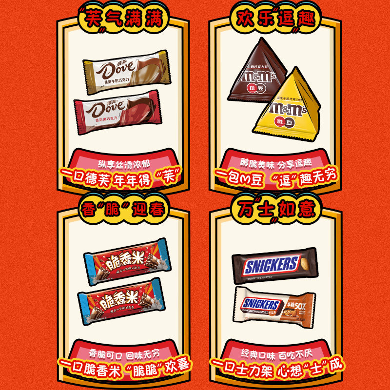 📚 德芙巧克力彩虹糖真知棒脆香米M豆糖果零食混合糖巧马年年货礼盒
