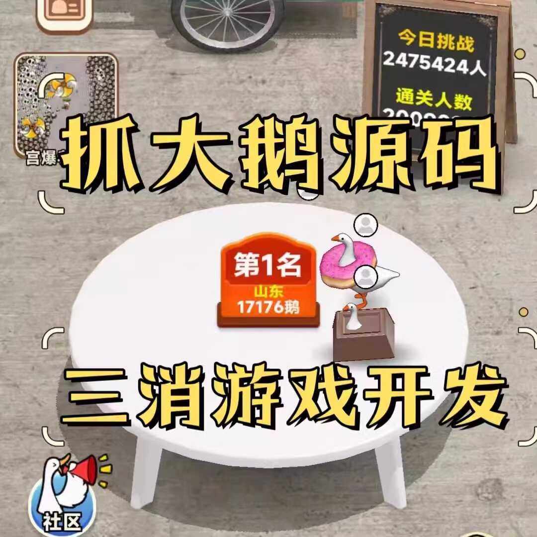 📚 抓大鹅游戏小程序开发消除类游戏定制对接广告流量主成品源码搭建
