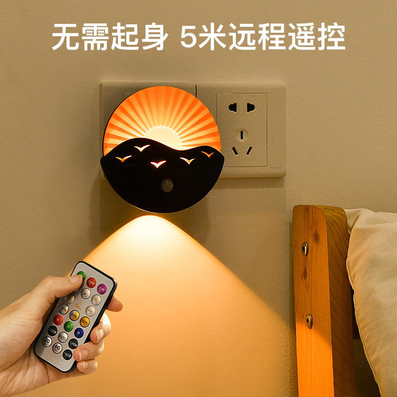 📚 床头小夜灯遥控接线款人体感应卧室插电式睡眠氛围灯新款射灯