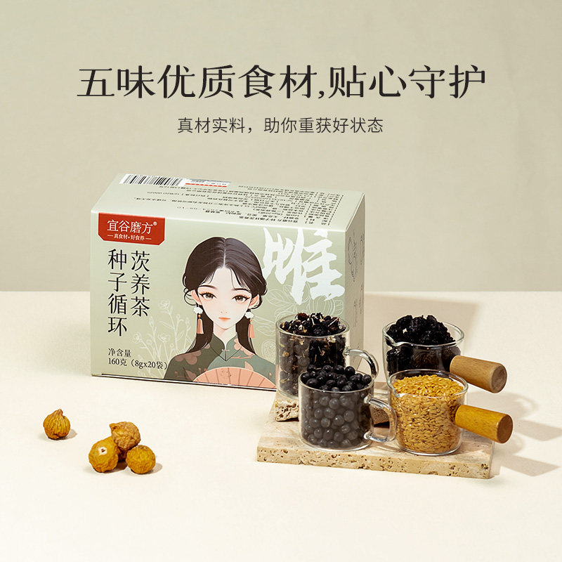 📚 宜谷磨方种子循环茨养茶亚麻籽无花果降雄养雌茶黄体酮养生茶花茶